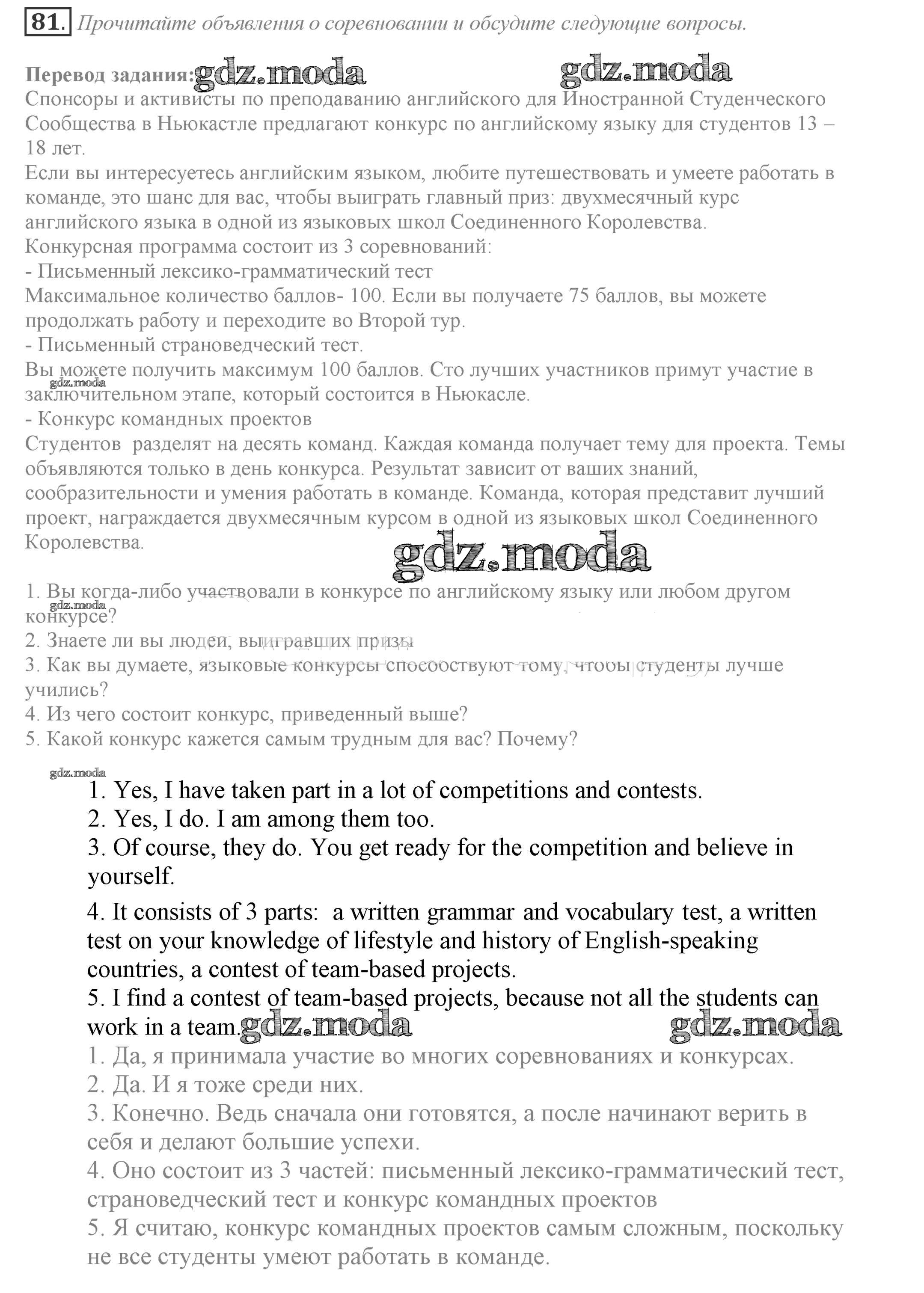 ОТВЕТ на задание № 81 Учебник по Английскому языку 9 класс Биболетова УМК