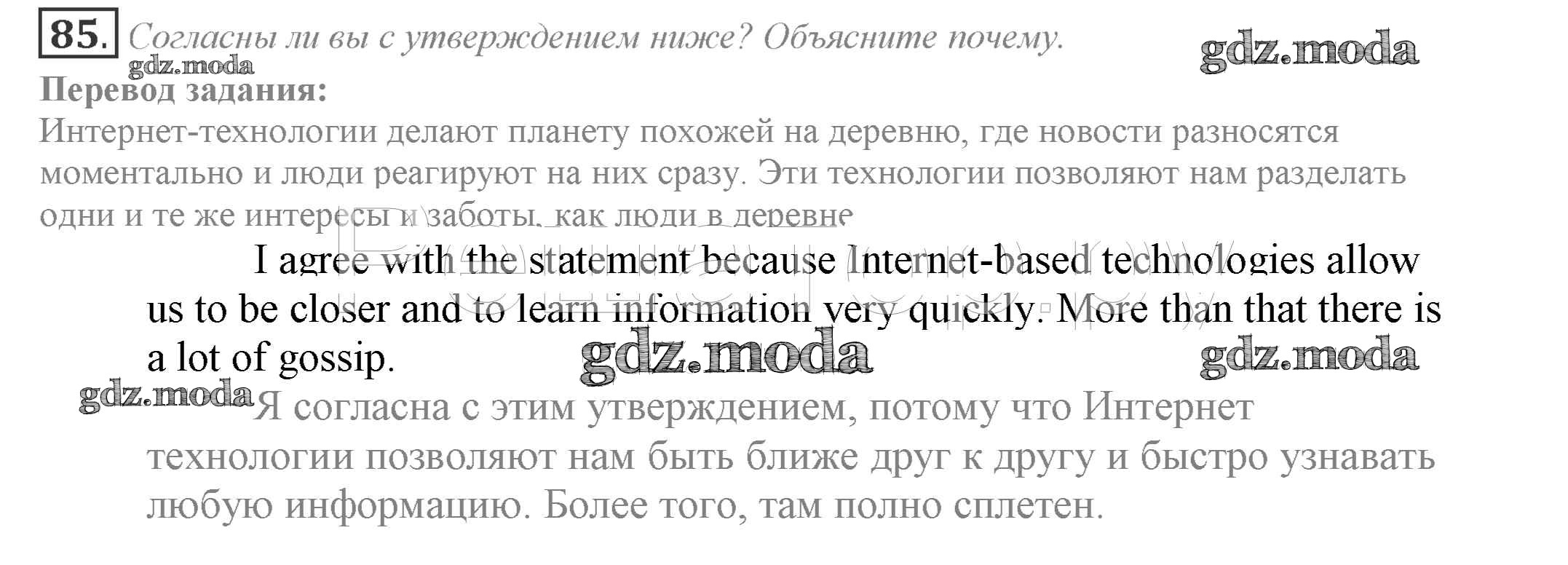 ОТВЕТ на задание № 85 Учебник по Английскому языку 9 класс Биболетова УМК