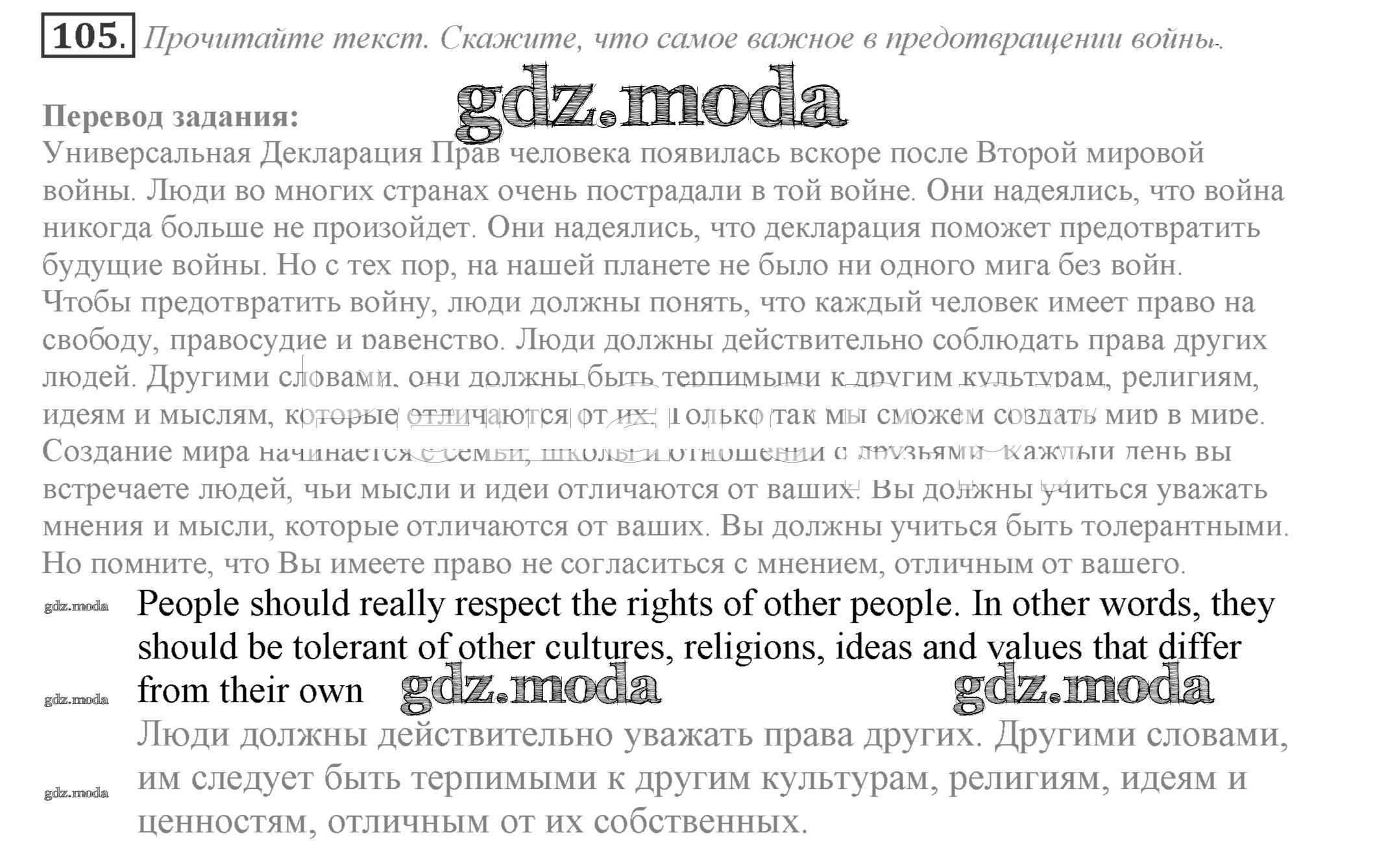 ОТВЕТ на задание № 105 Учебник по Английскому языку 9 класс Биболетова УМК