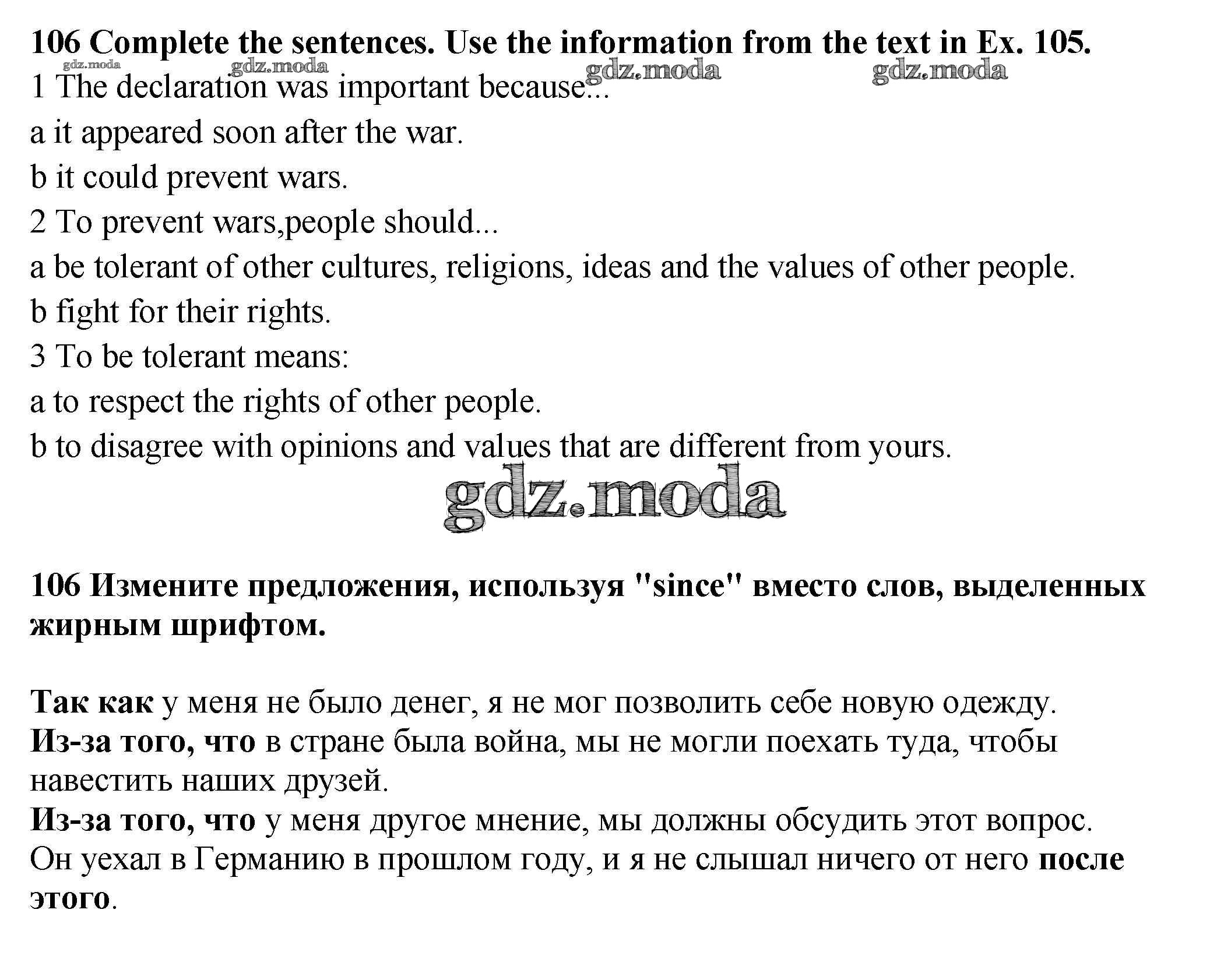ОТВЕТ на задание № 106 Учебник по Английскому языку 9 класс Биболетова УМК