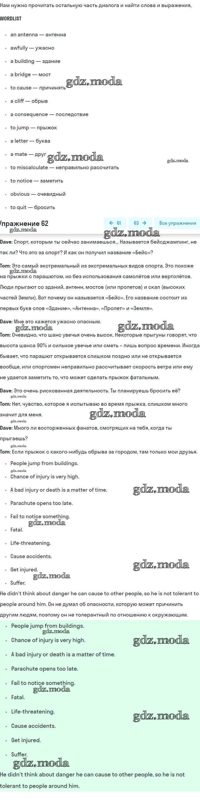 ОТВЕТ на задание № 62 Учебник по Английскому языку 9 класс Биболетова Enjoy English