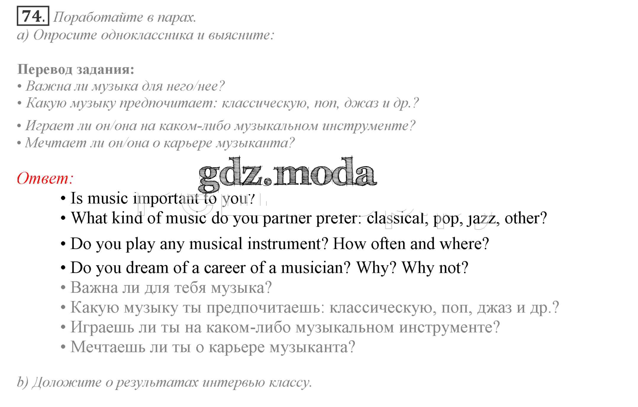 ОТВЕТ на задание № 74 Учебник по Английскому языку 9 класс Биболетова УМК