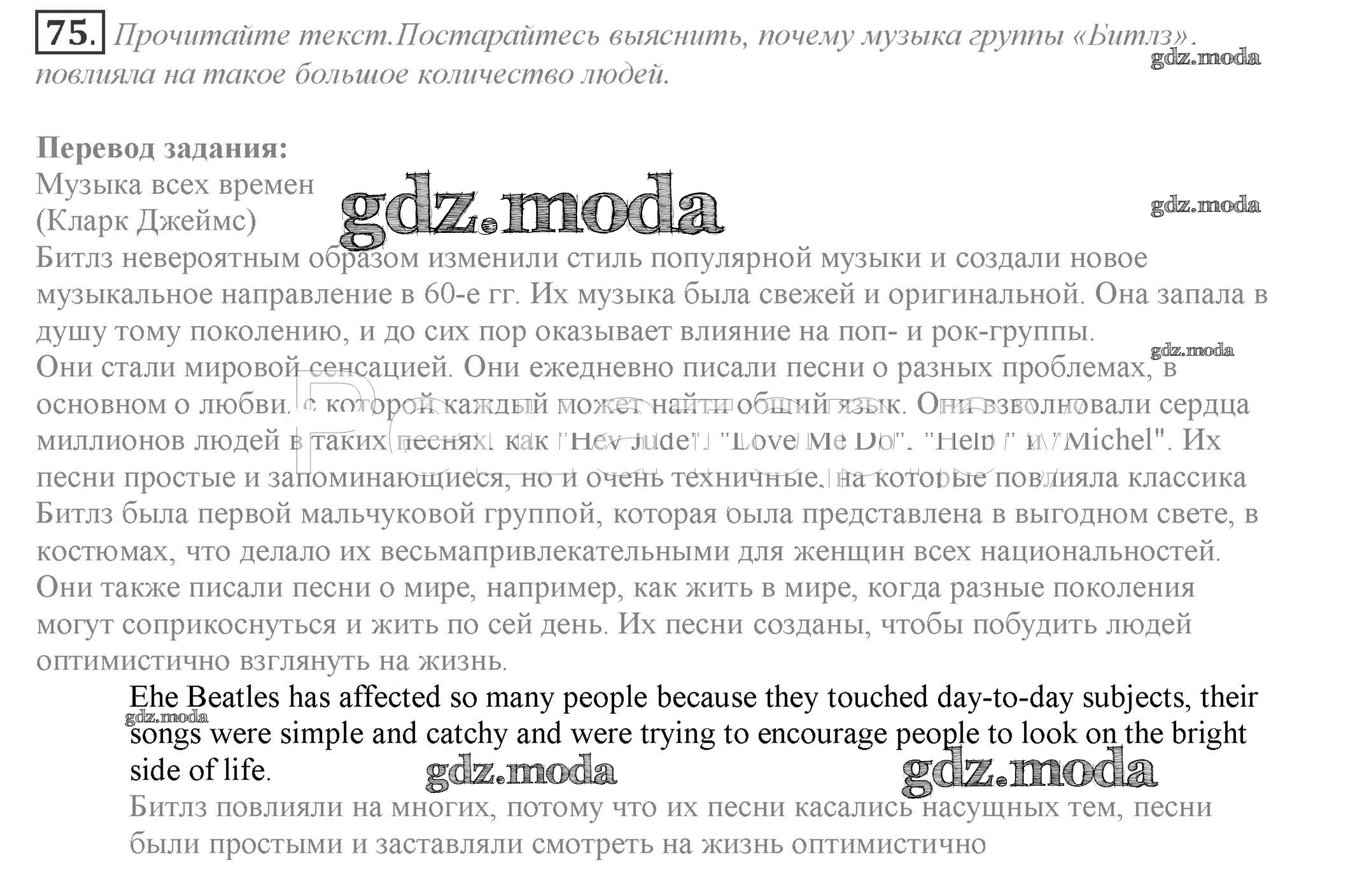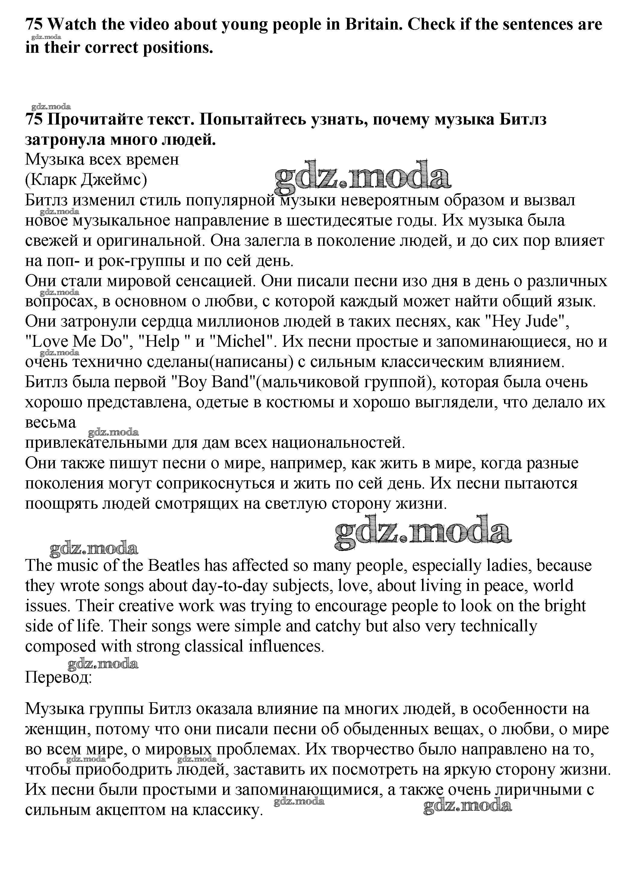 ОТВЕТ на задание № 75 Учебник по Английскому языку 9 класс Биболетова УМК