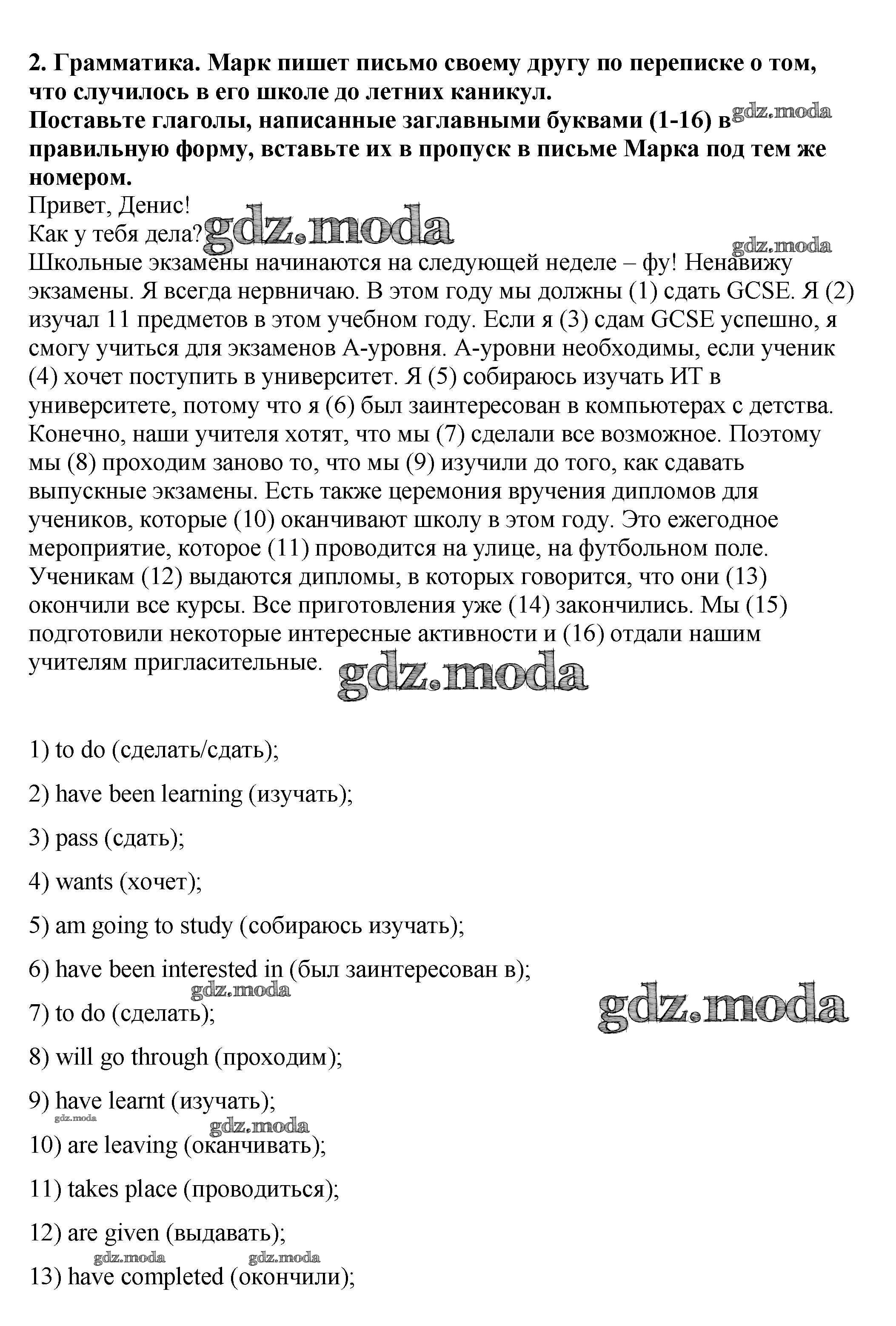 ОТВЕТ на задание № 2 Рабочая тетрадь по Английскому языку 9 класс Кузовлёв УМК