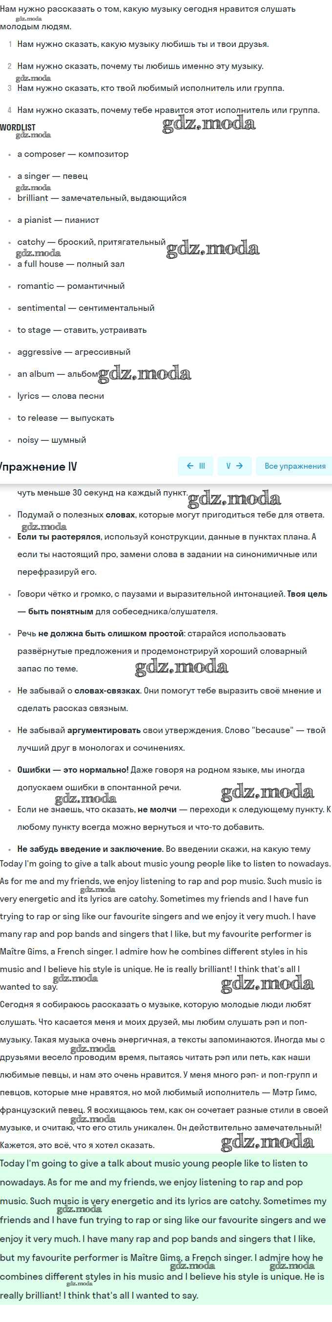 ОТВЕТ на задание № IV Учебник по Английскому языку 9 класс Кузовлёв УМК