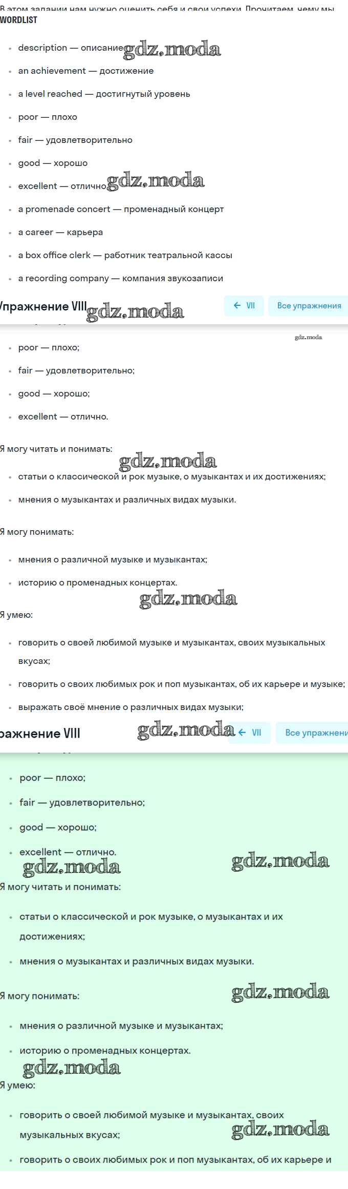 ГДЗ решение к заданию № VIII Английский язык 9 класс Кузовлёв В.П. Просвещение 2015 ФГОС бесплатно на гдз.мода!