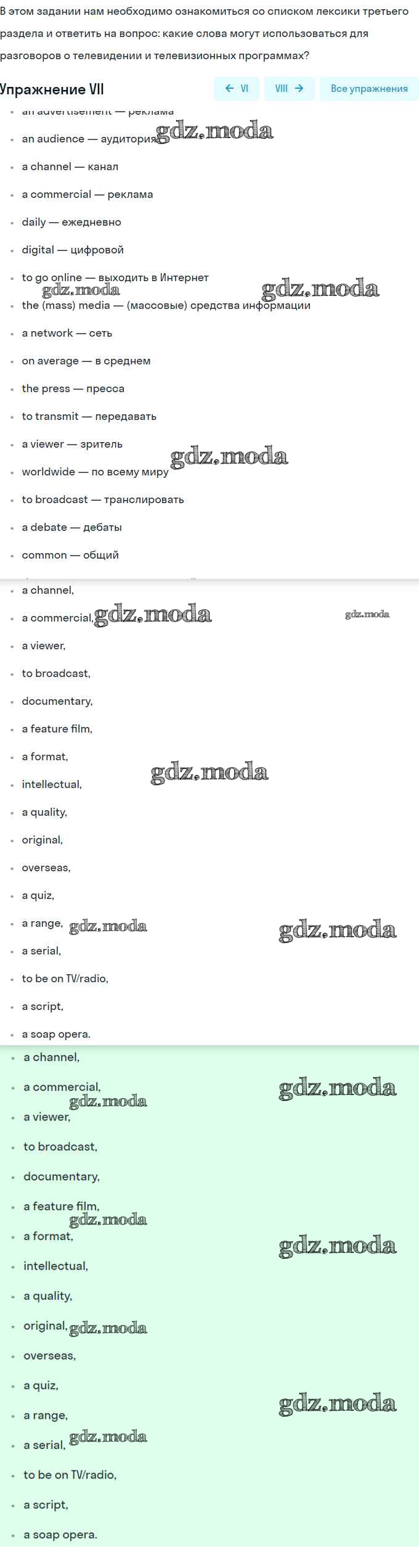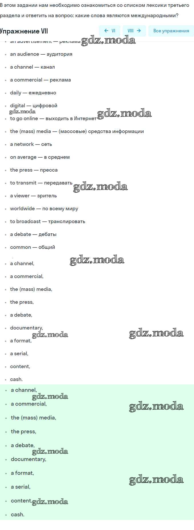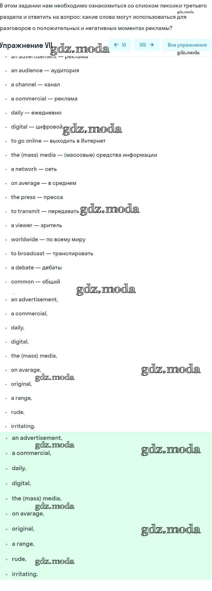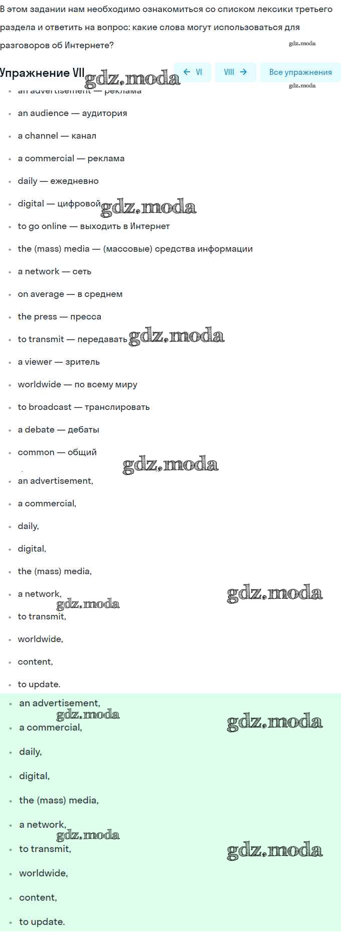 ГДЗ решение к заданию № VII Английский язык 9 класс Кузовлёв В.П. Просвещение 2015 ФГОС бесплатно на гдз.мода!