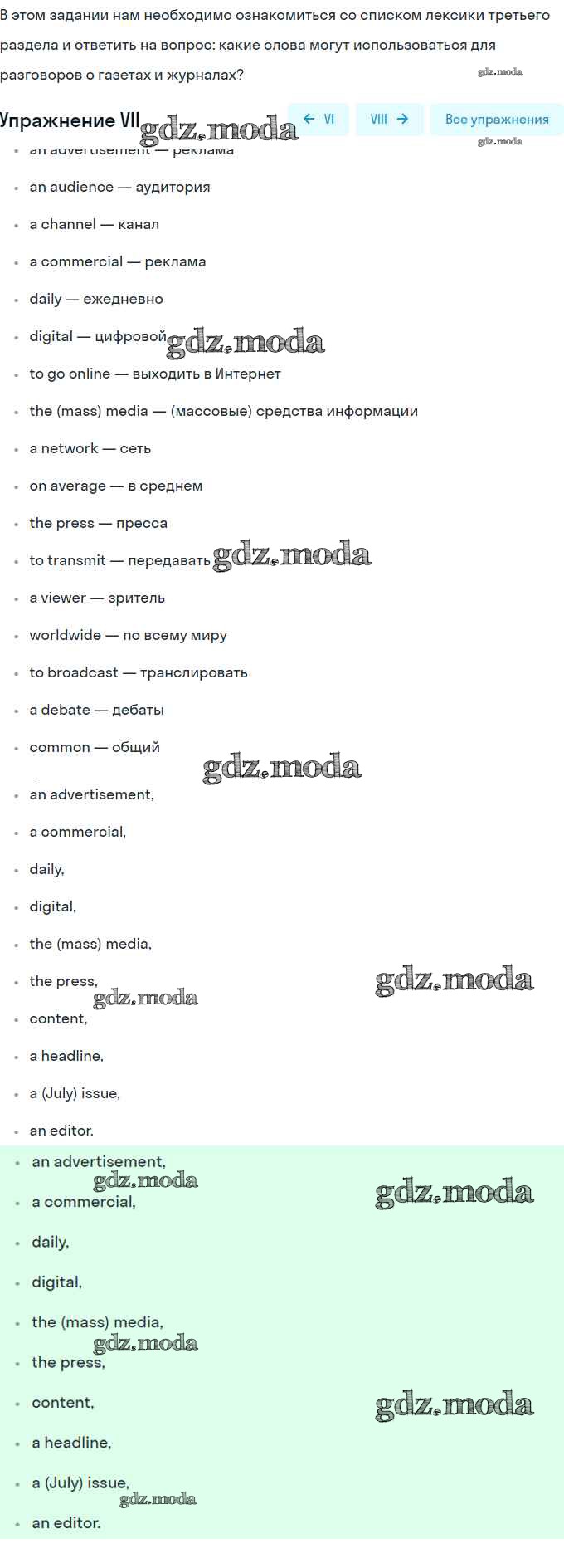 ОТВЕТ на задание № VII Учебник по Английскому языку 9 класс Кузовлёв УМК