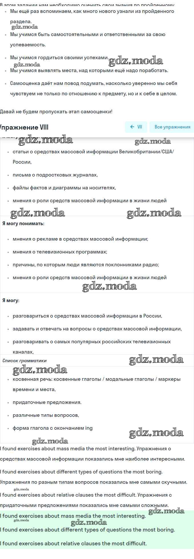 ГДЗ решение к заданию № VIII Английский язык 9 класс Кузовлёв В.П. Просвещение 2015 ФГОС бесплатно на гдз.мода!