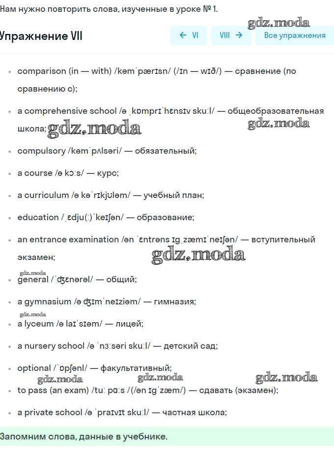 ГДЗ решение к заданию № VII Английский язык 9 класс Кузовлёв В.П. Просвещение 2015 ФГОС бесплатно на гдз.мода!