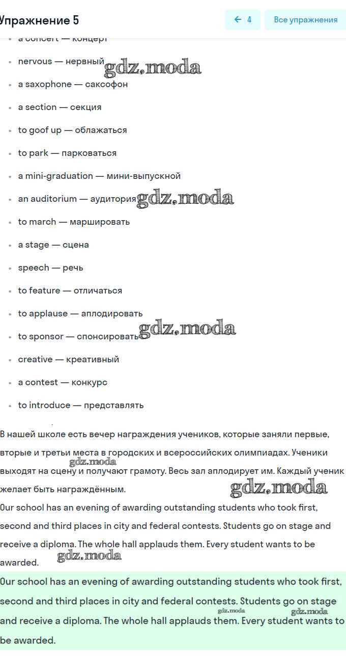 ГДЗ решение к заданию № 5 Английский язык 9 класс Кузовлёв В.П. Просвещение 2015 ФГОС бесплатно на гдз.мода!