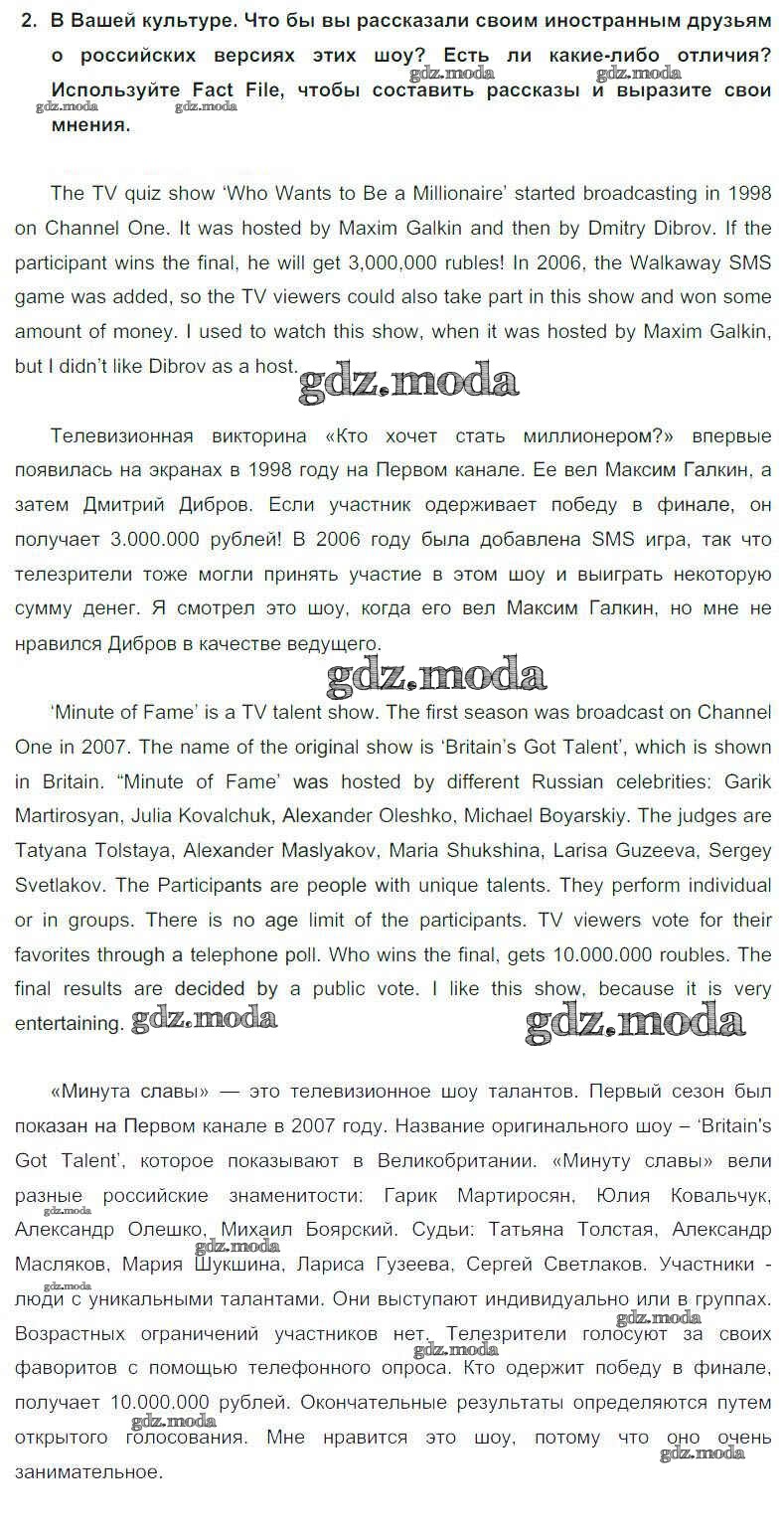 ОТВЕТ на задание № 2 Учебник по Английскому языку 9 класс Кузовлёв УМК