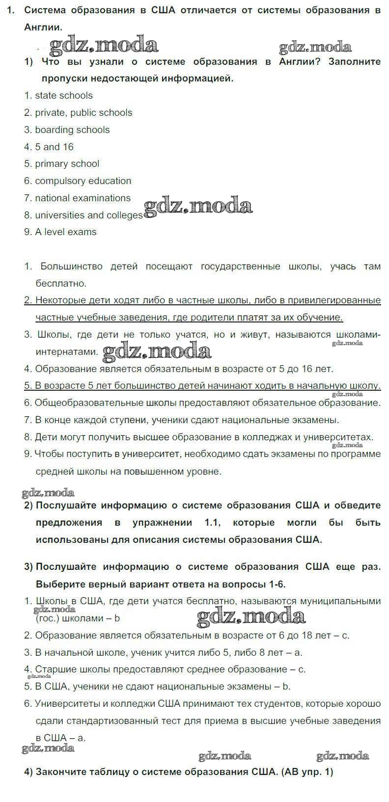 ОТВЕТ на задание № 1 Учебник по Английскому языку 9 класс Кузовлёв УМК