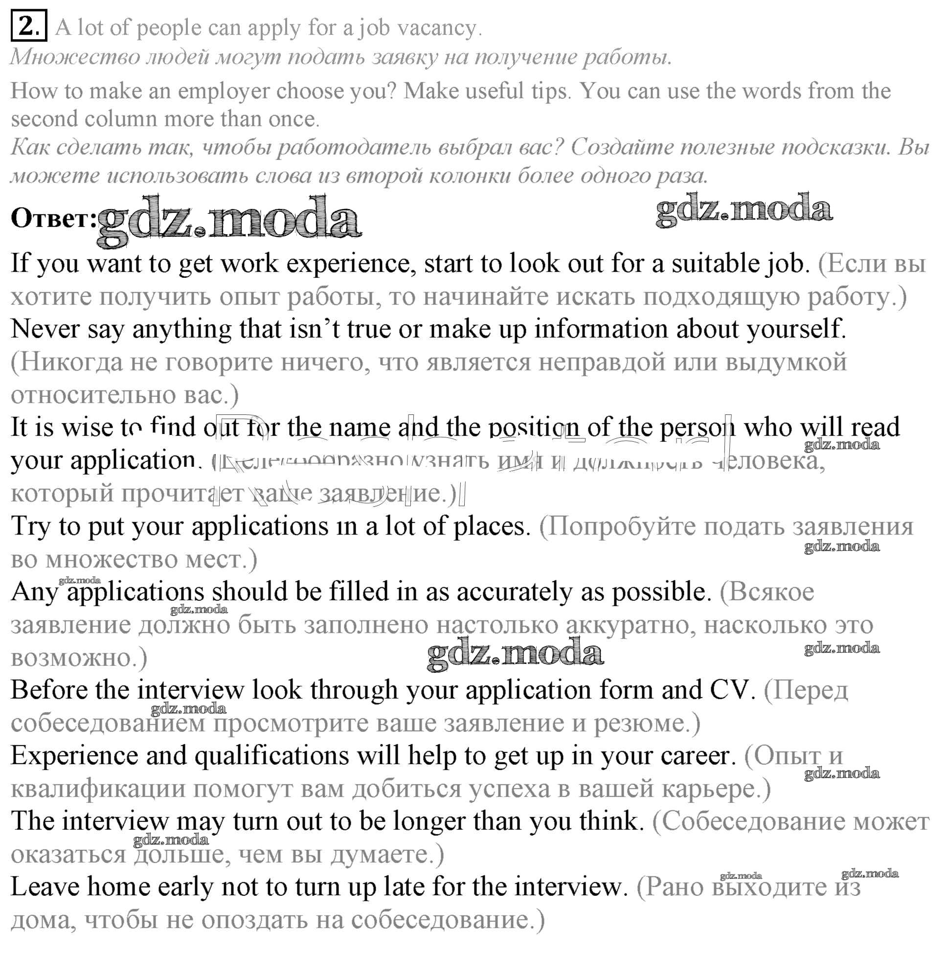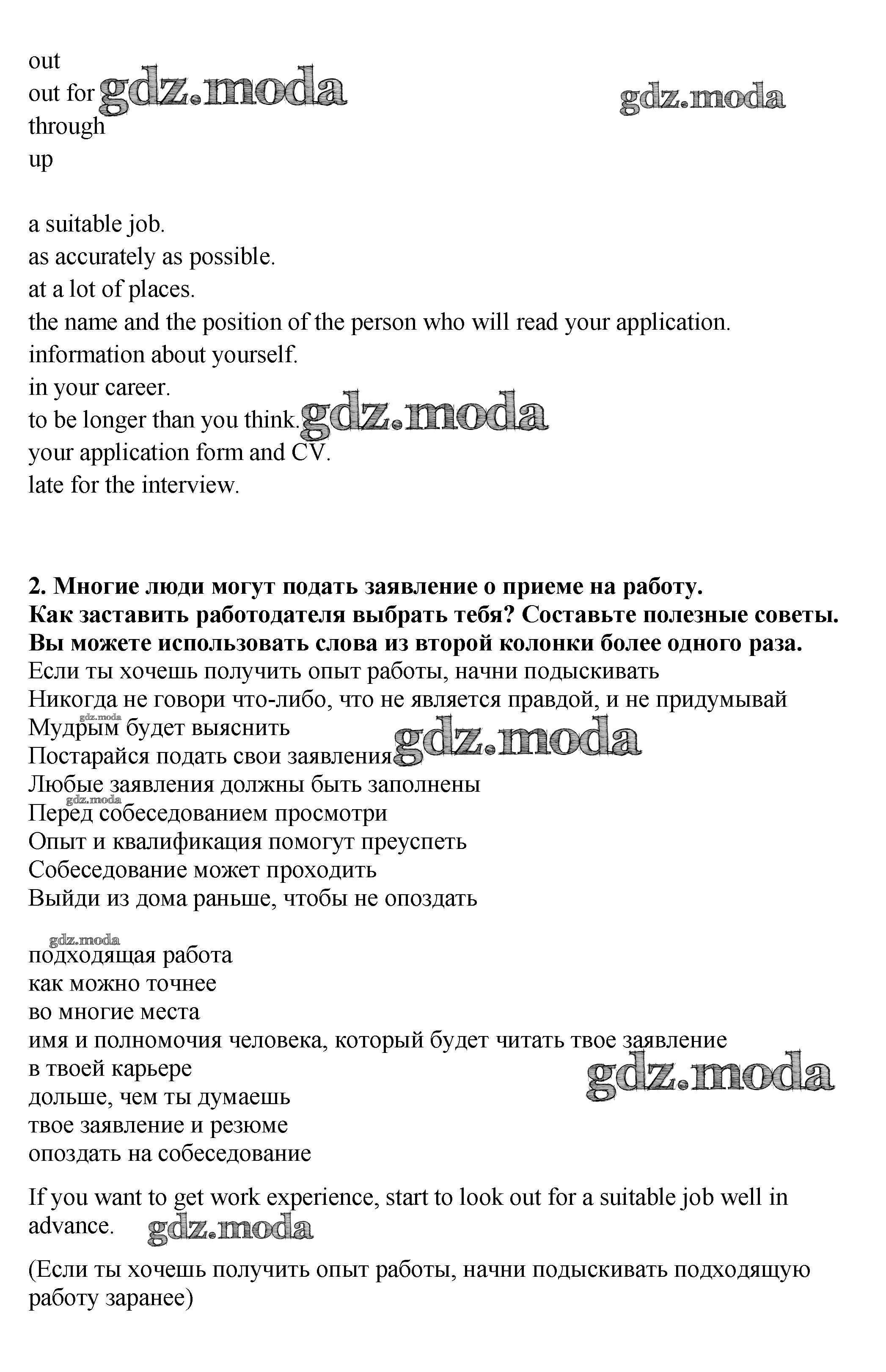 ОТВЕТ на задание № 2 Учебник по Английскому языку 9 класс Кузовлёв УМК