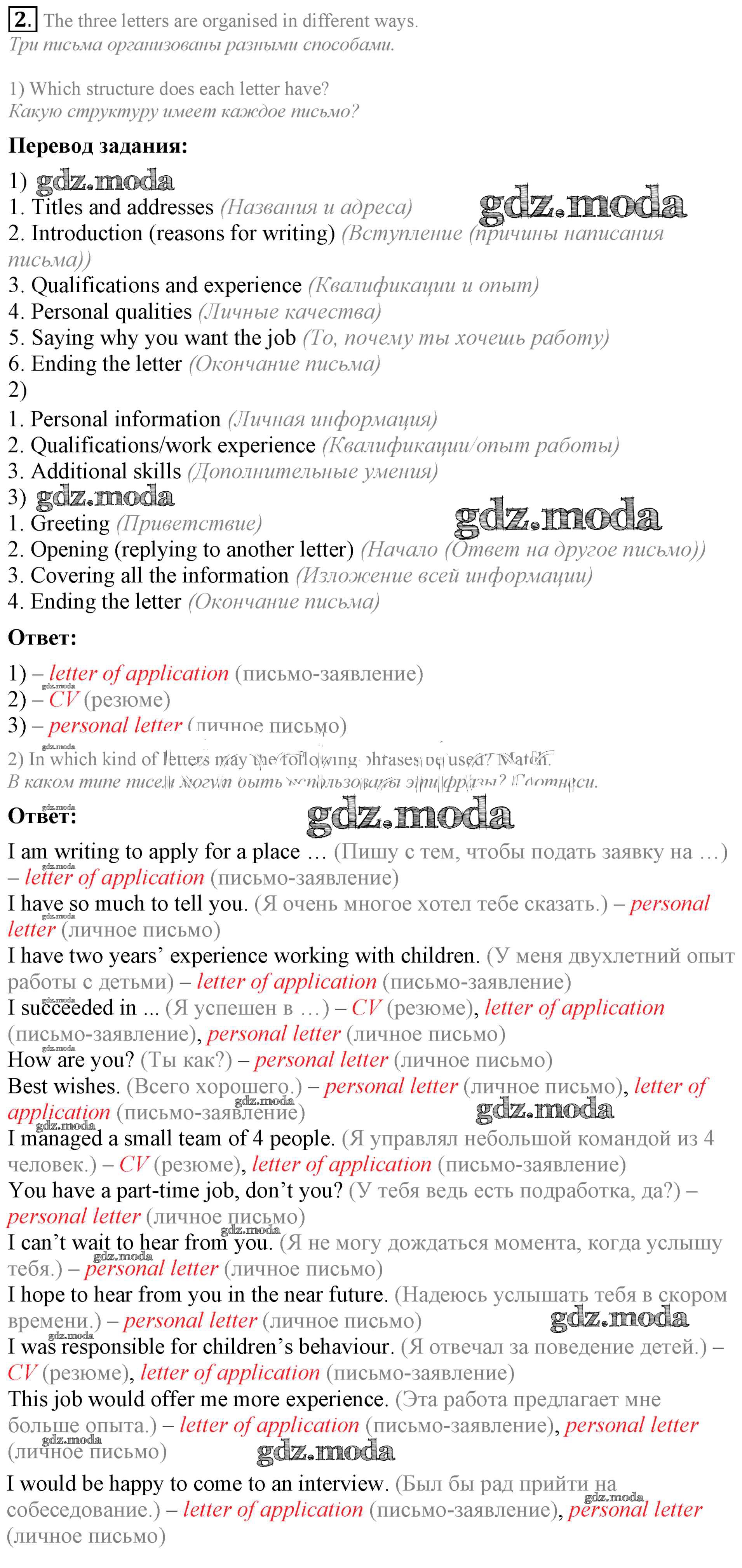 ОТВЕТ на задание № 2 Учебник по Английскому языку 9 класс Кузовлёв УМК