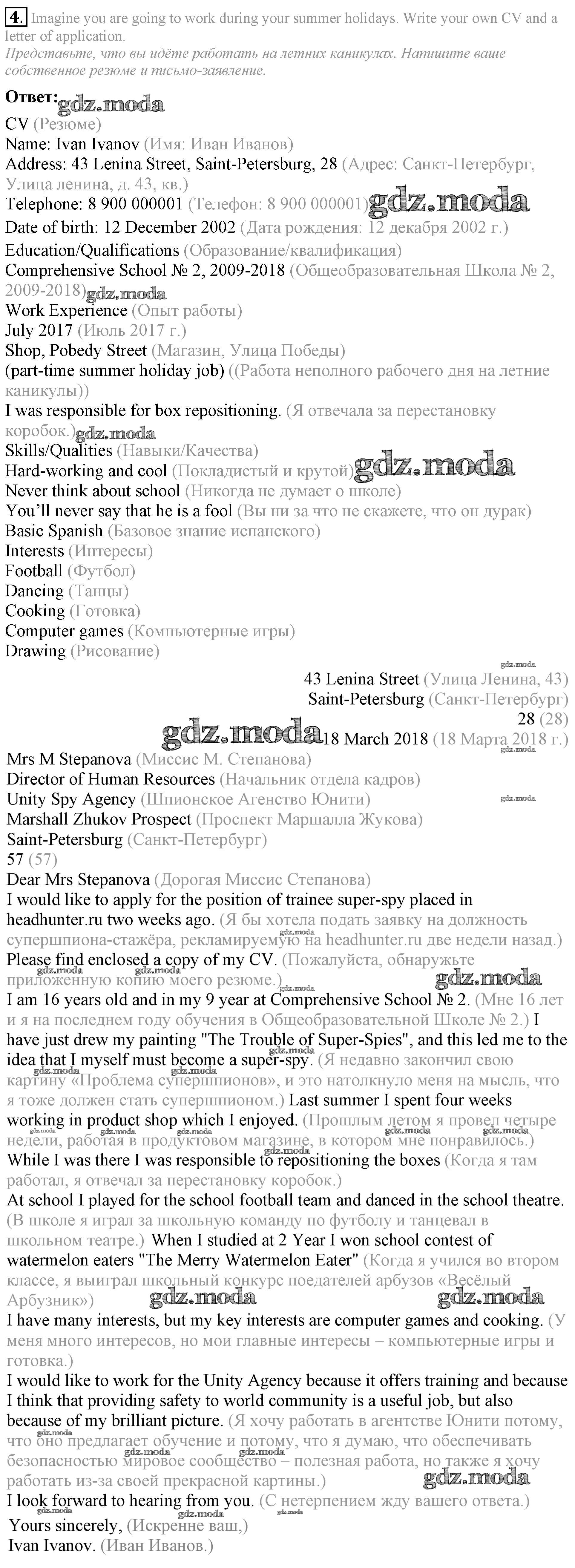 ОТВЕТ на задание № 4 Учебник по Английскому языку 9 класс Кузовлёв УМК