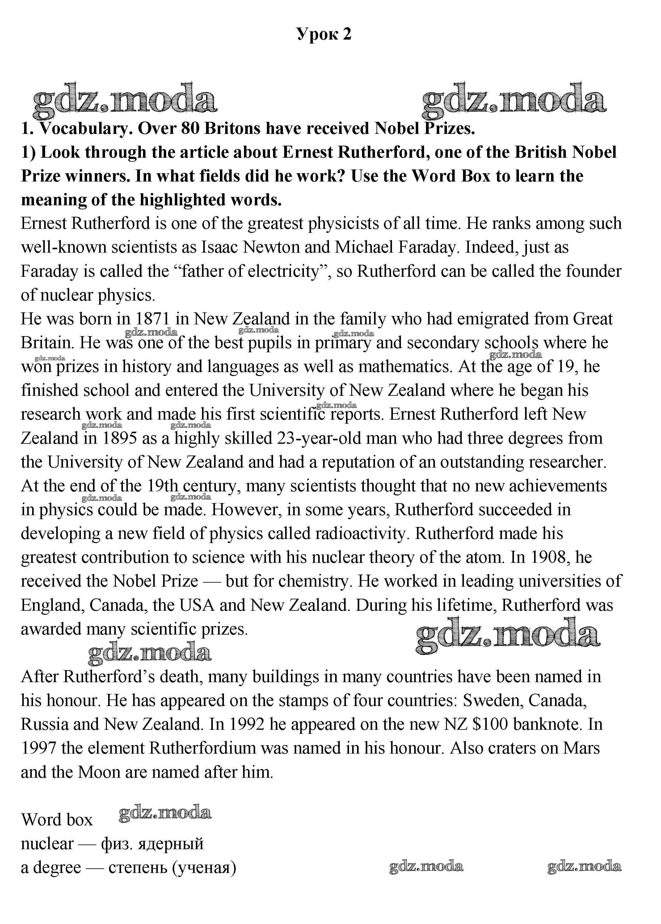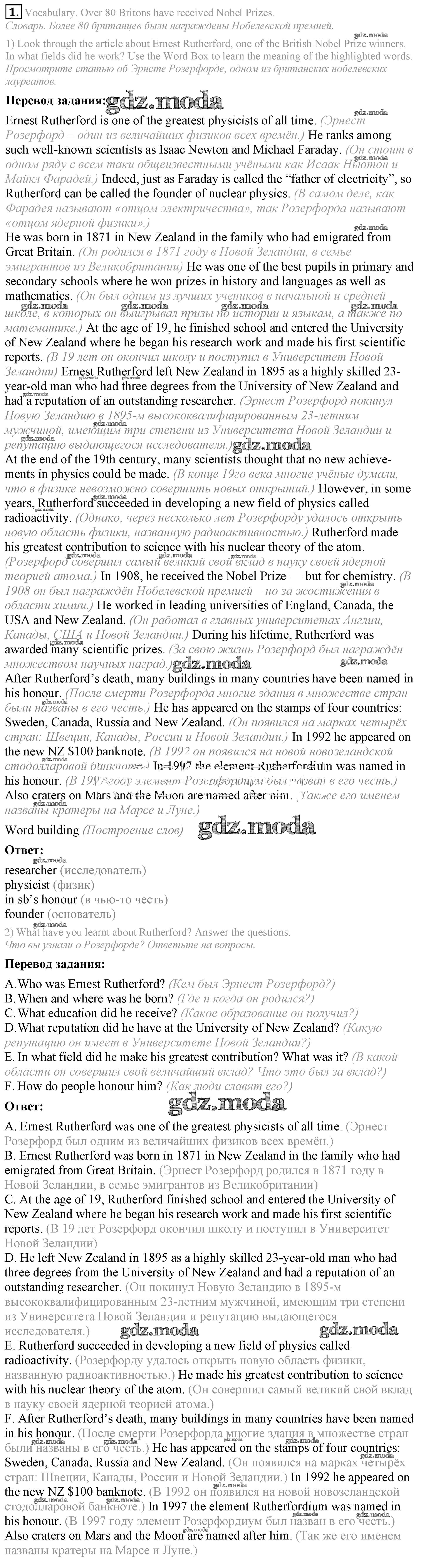 ОТВЕТ на задание № 1 Учебник по Английскому языку 9 класс Кузовлёв УМК