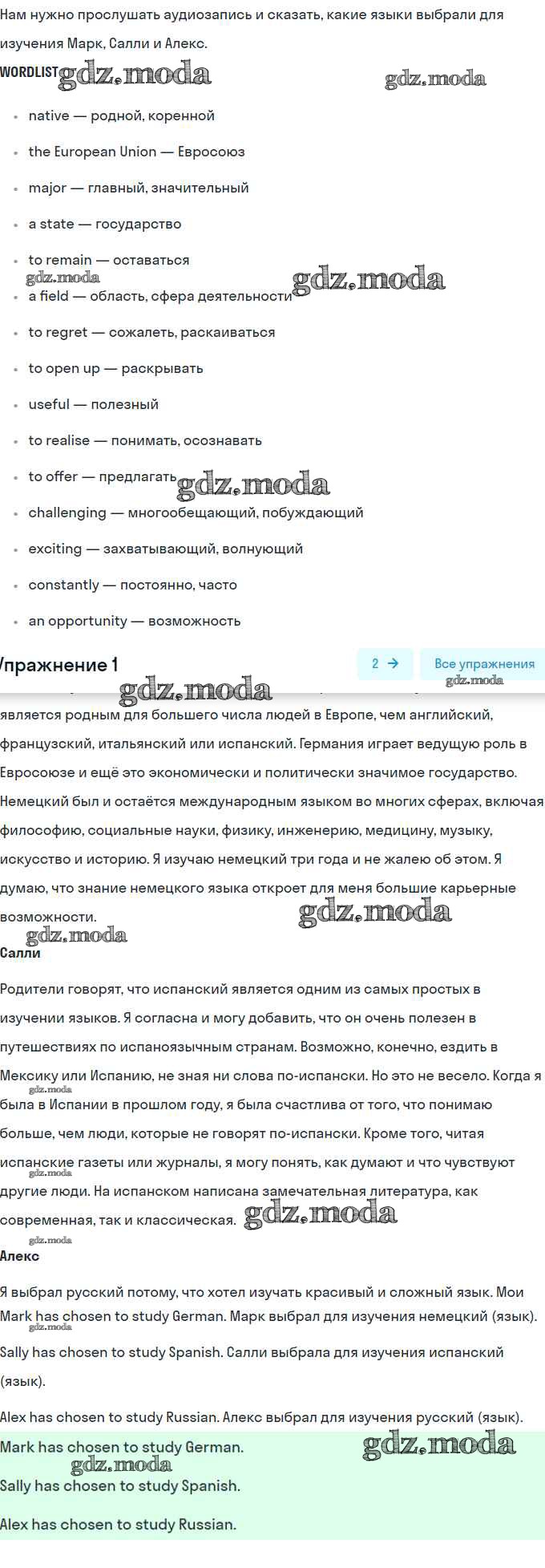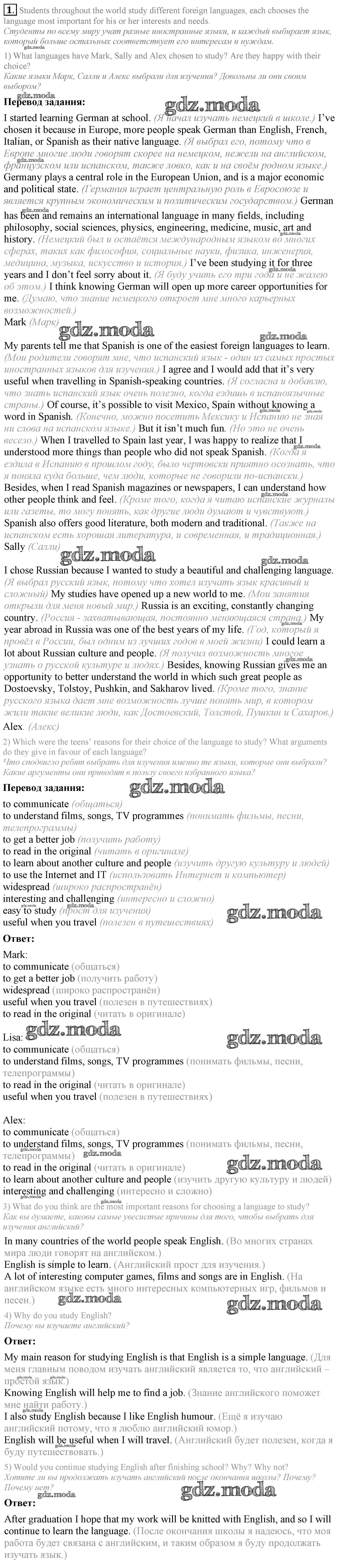 ОТВЕТ на задание № 1 Учебник по Английскому языку 9 класс Кузовлёв УМК