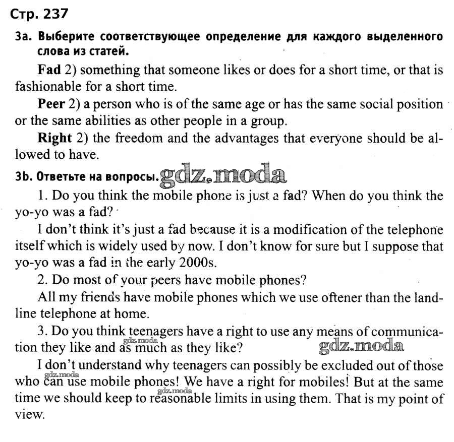 ГДЗ решение к заданию № 237 Английский язык 9 класс Лапицкая Л.М. Высшая школа 2018 ФГОС бесплатно на гдз.мода!