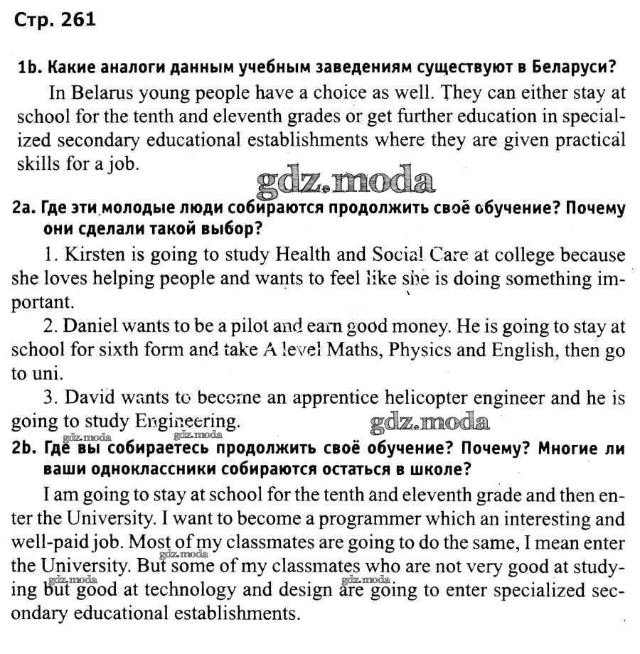 ГДЗ решение к заданию № 261 Английский язык 9 класс Лапицкая Л.М. Высшая школа 2018 ФГОС бесплатно на гдз.мода!