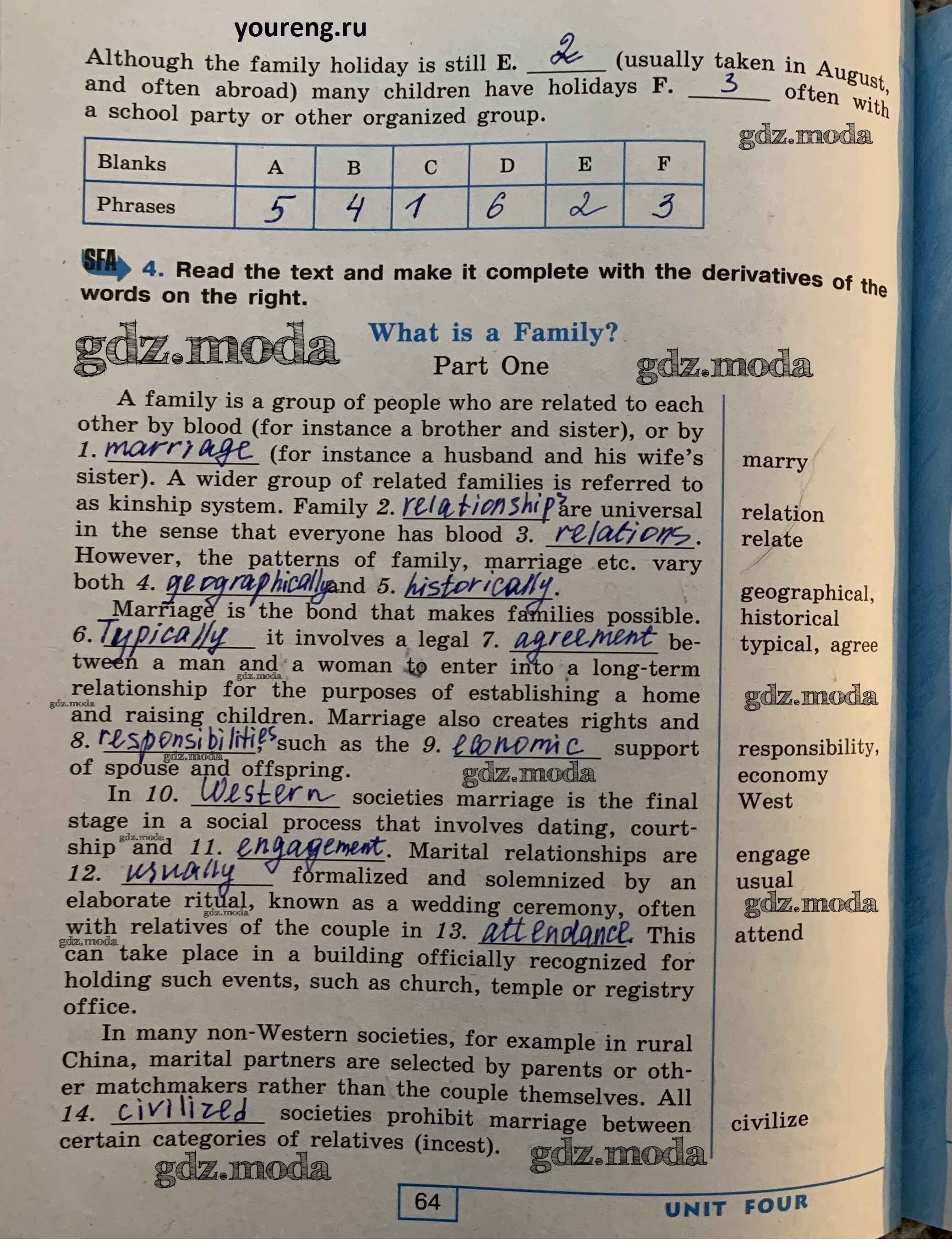 ГДЗ решение к заданию № стр. 64 Английский язык 9 класс рабочая тетрадь Афанасьева О.В. Просвещение 2016 Углубленный уровень ФГОС бесплатно на гдз.мода!