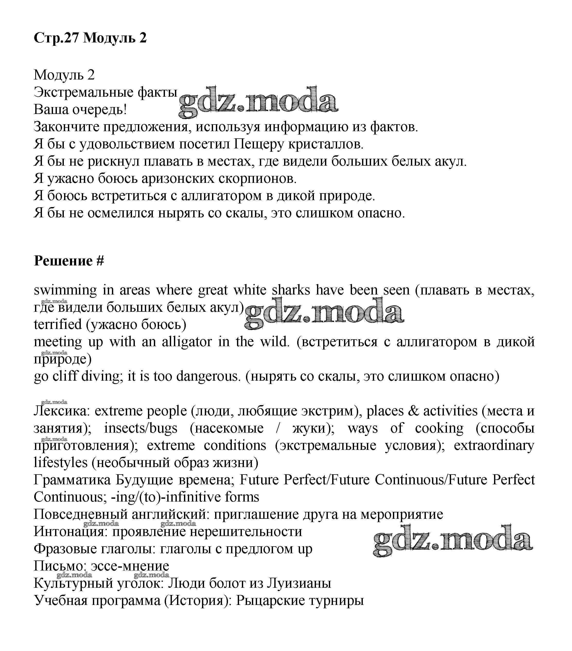 ГДЗ решение к заданию № стр.27 Английский язык 9 класс Starlight Баранова К.М. Просвещение 2017 Углубленный уровень ФГОС бесплатно на гдз.мода!