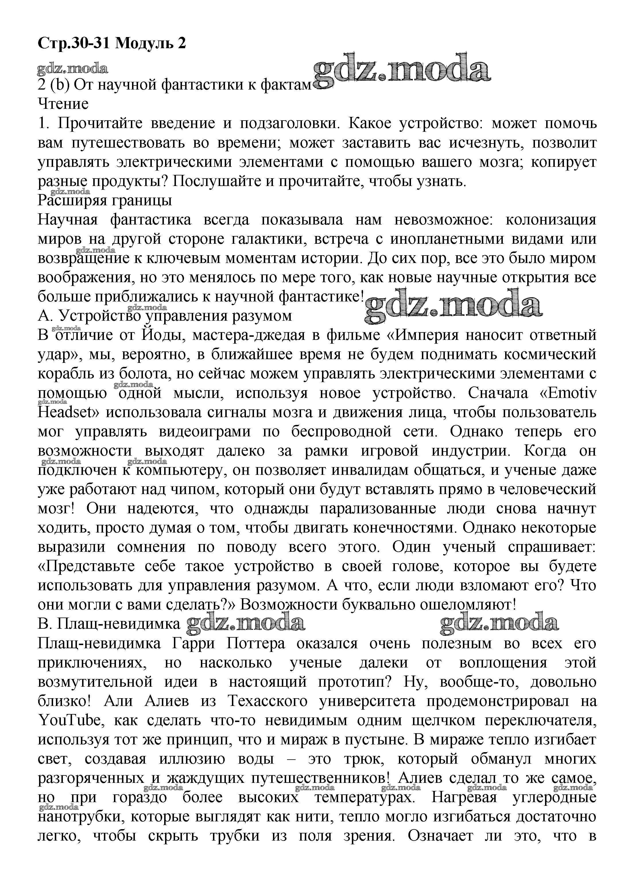 ГДЗ решение к заданию № стр.30-31 Английский язык 9 класс Starlight Баранова К.М. Просвещение 2017 Углубленный уровень ФГОС бесплатно на гдз.мода!