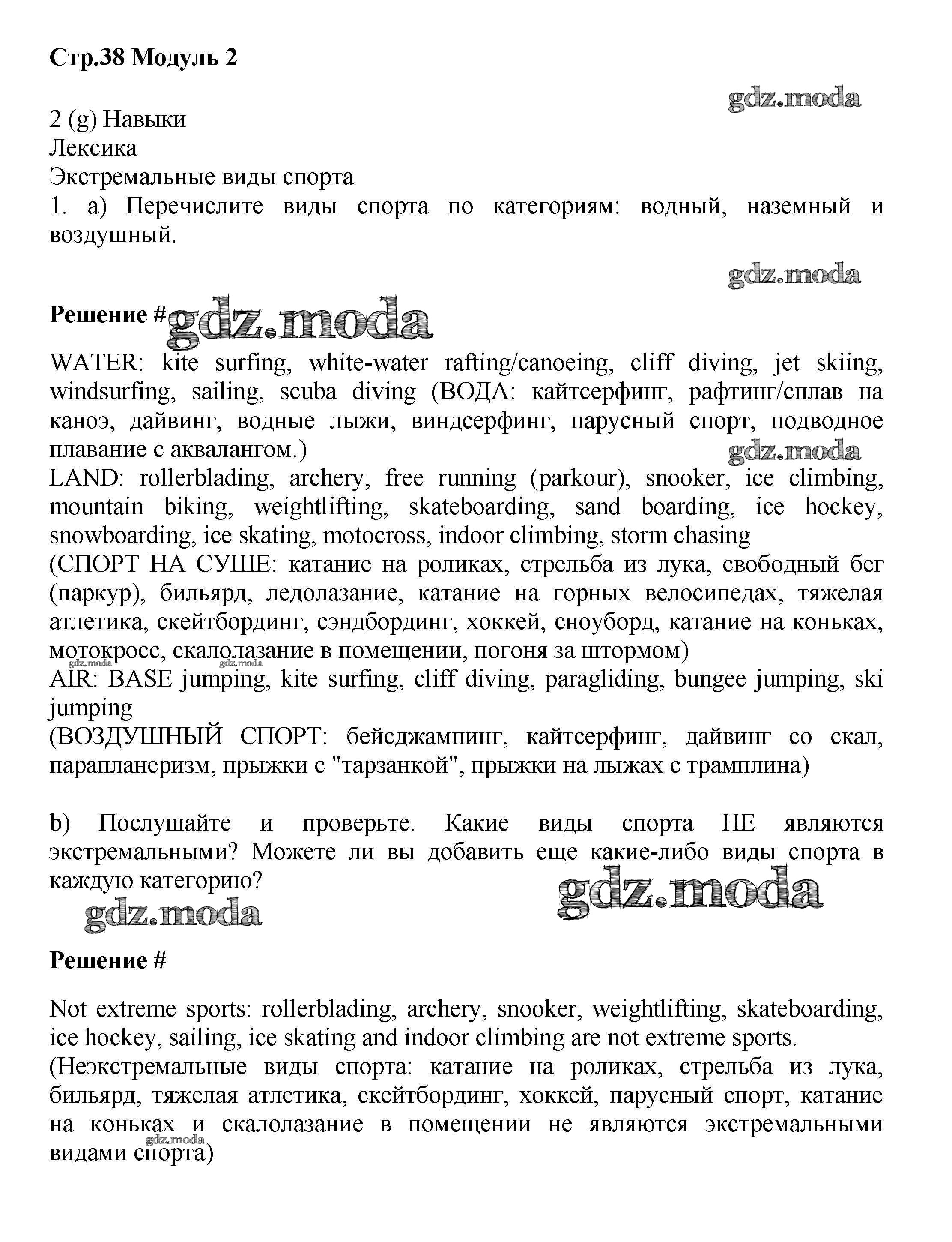 ГДЗ решение к заданию № стр.38 Английский язык 9 класс Starlight Баранова К.М. Просвещение 2017 Углубленный уровень ФГОС бесплатно на гдз.мода!
