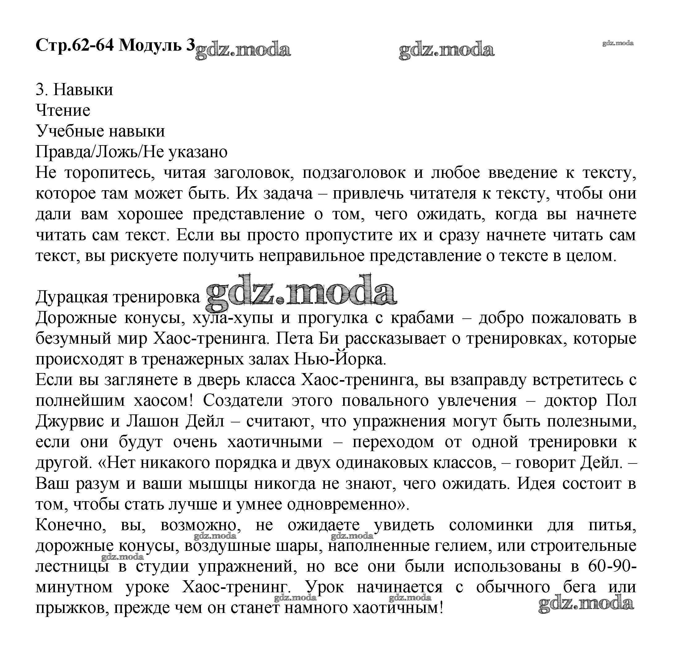 ГДЗ решение к заданию № стр.62-64 Английский язык 9 класс Starlight Баранова К.М. Просвещение 2017 Углубленный уровень ФГОС бесплатно на гдз.мода!