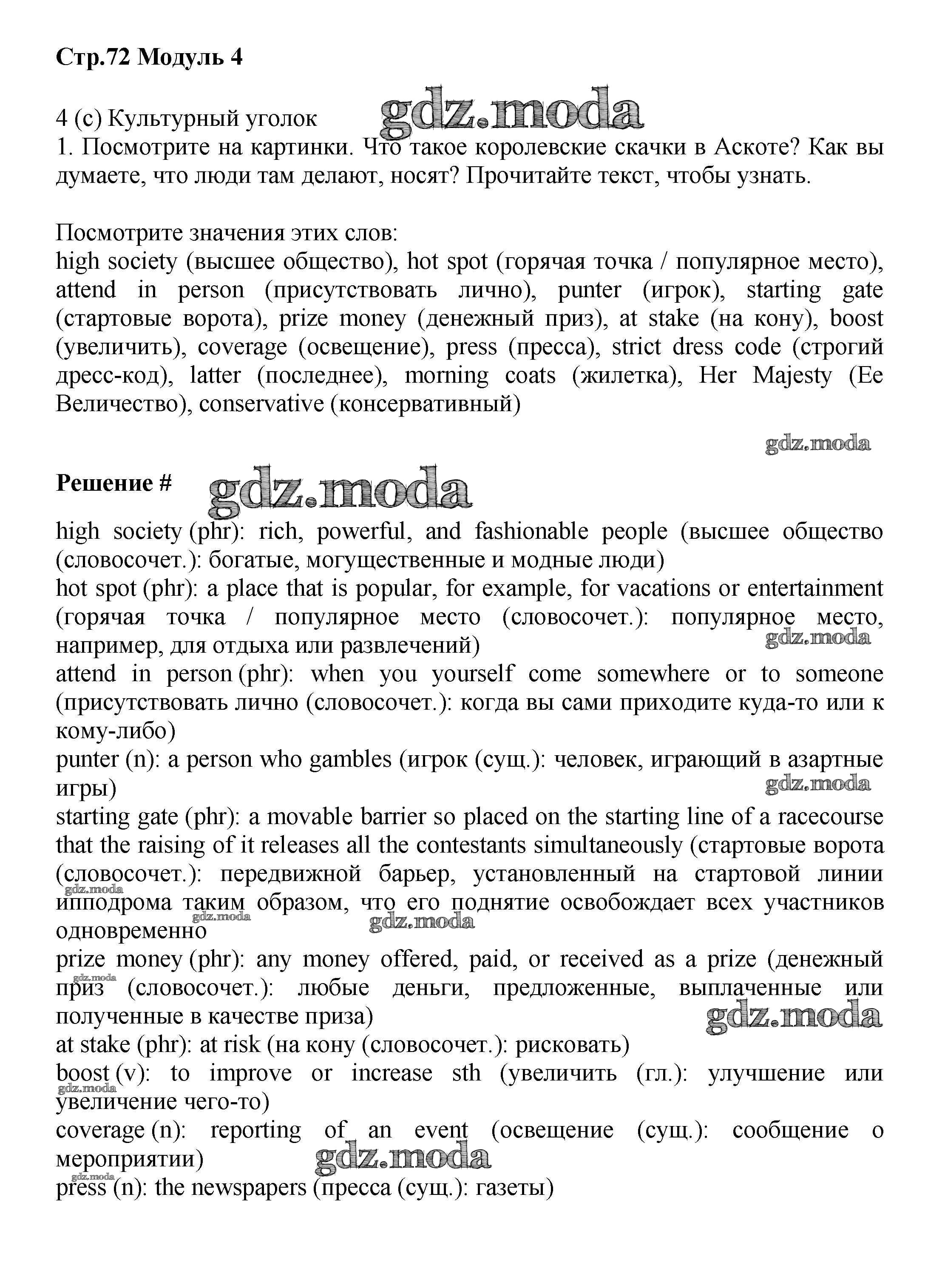 ГДЗ решение к заданию № стр.72 Английский язык 9 класс Starlight Баранова К.М. Просвещение 2017 Углубленный уровень ФГОС бесплатно на гдз.мода!