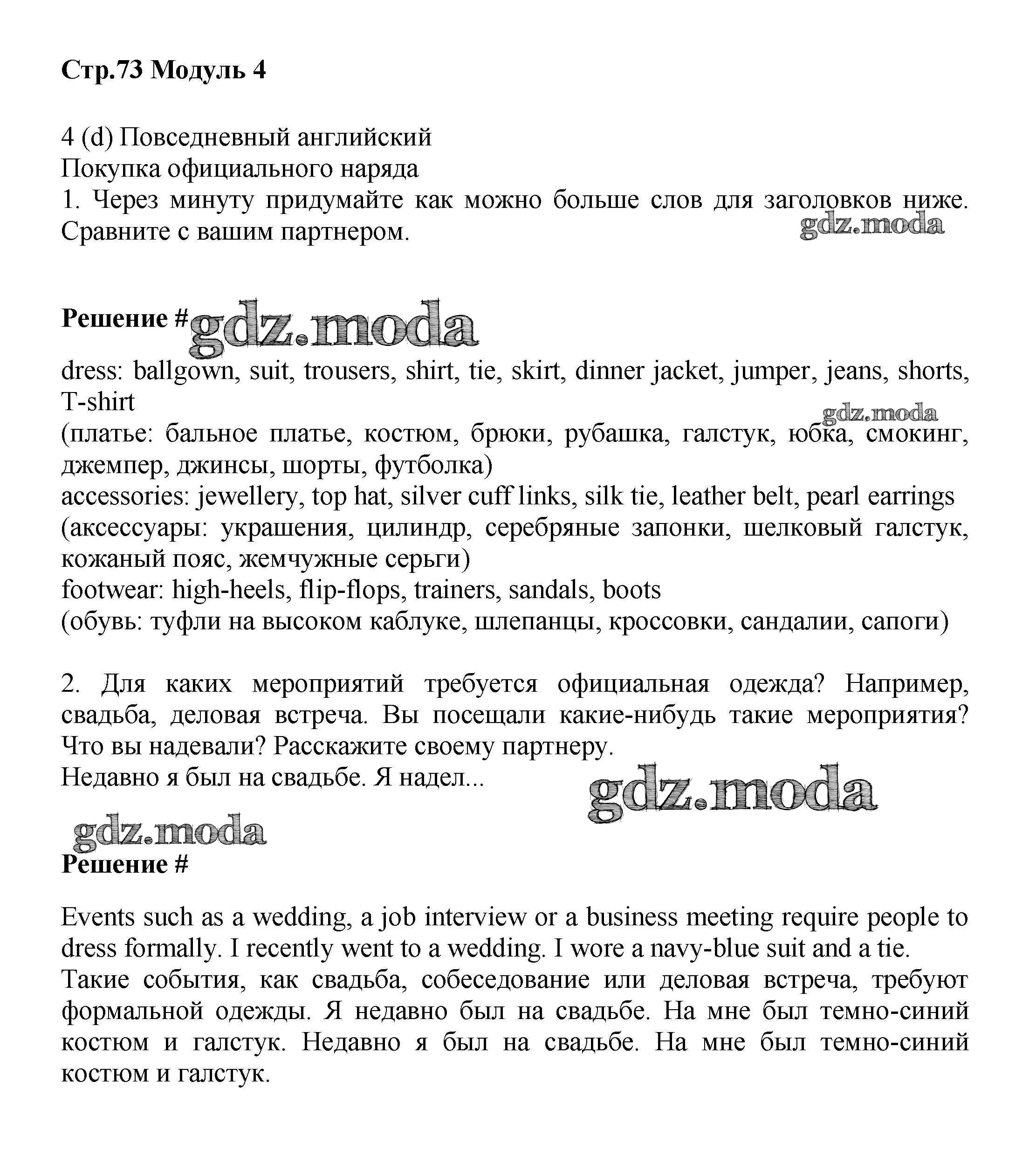 ГДЗ решение к заданию № стр.73 Английский язык 9 класс Starlight Баранова К.М. Просвещение 2017 Углубленный уровень ФГОС бесплатно на гдз.мода!