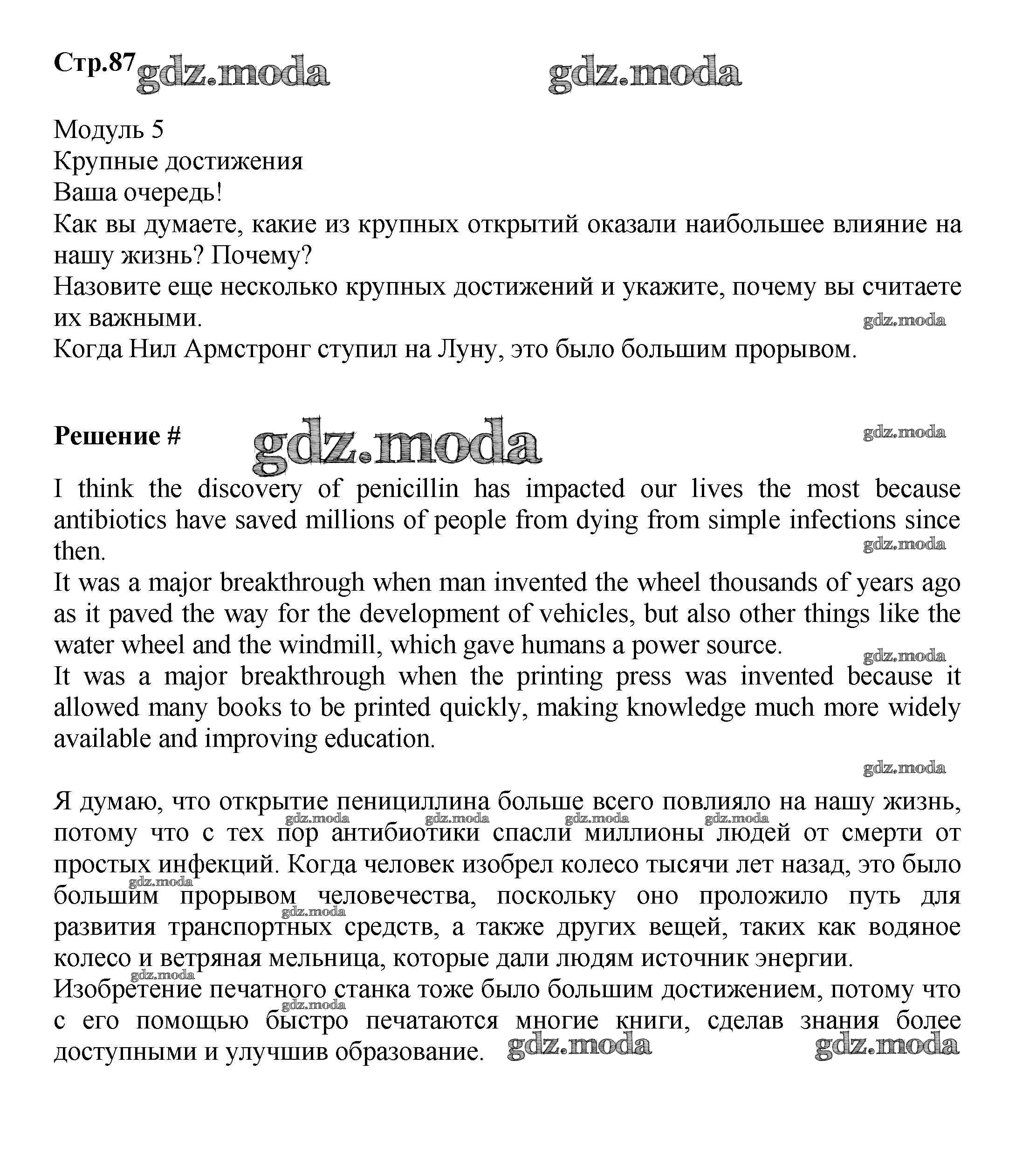 ГДЗ решение к заданию № стр.87 Английский язык 9 класс Starlight Баранова К.М. Просвещение 2017 Углубленный уровень ФГОС бесплатно на гдз.мода!