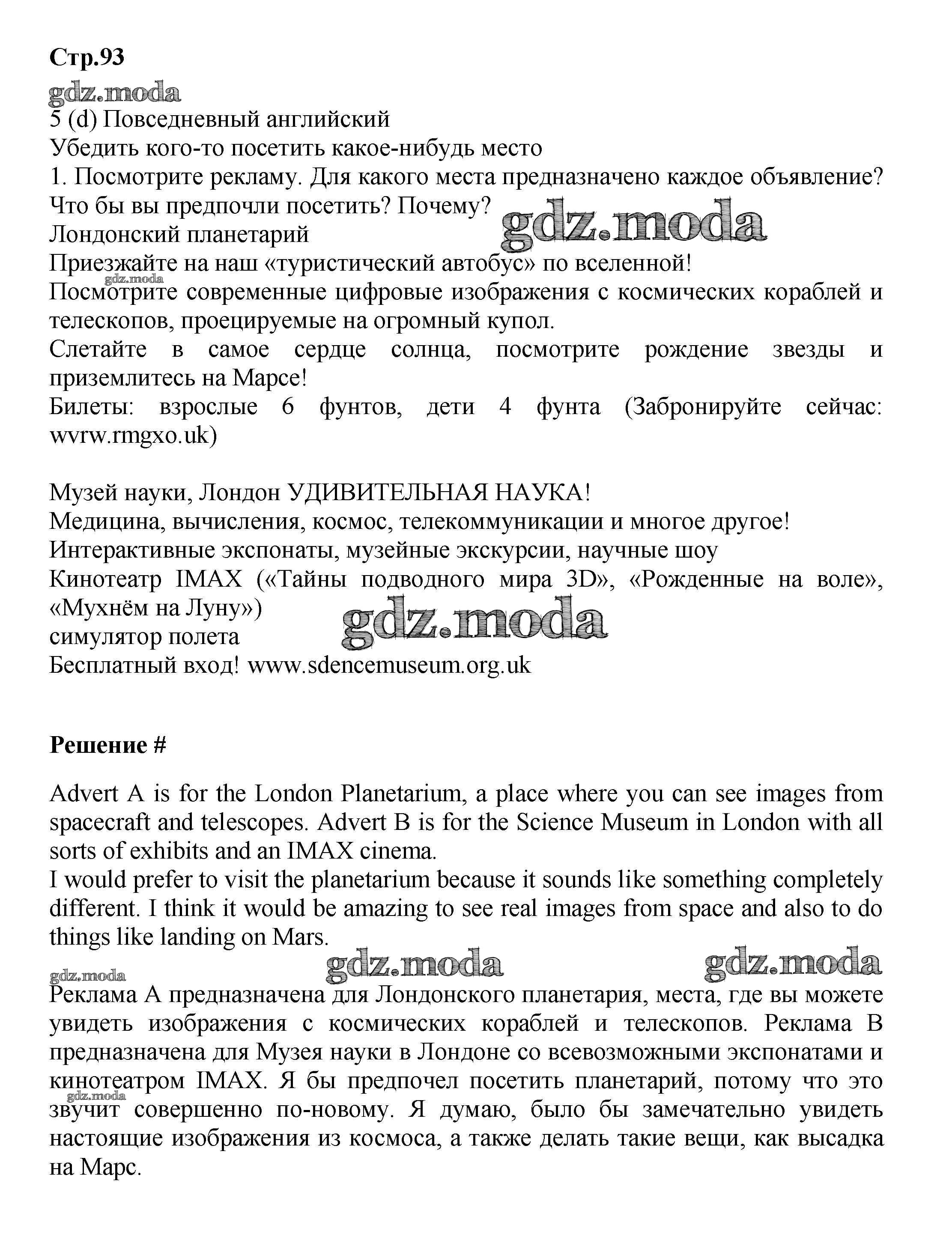 ГДЗ решение к заданию № стр.93 Английский язык 9 класс Starlight Баранова К.М. Просвещение 2017 Углубленный уровень ФГОС бесплатно на гдз.мода!