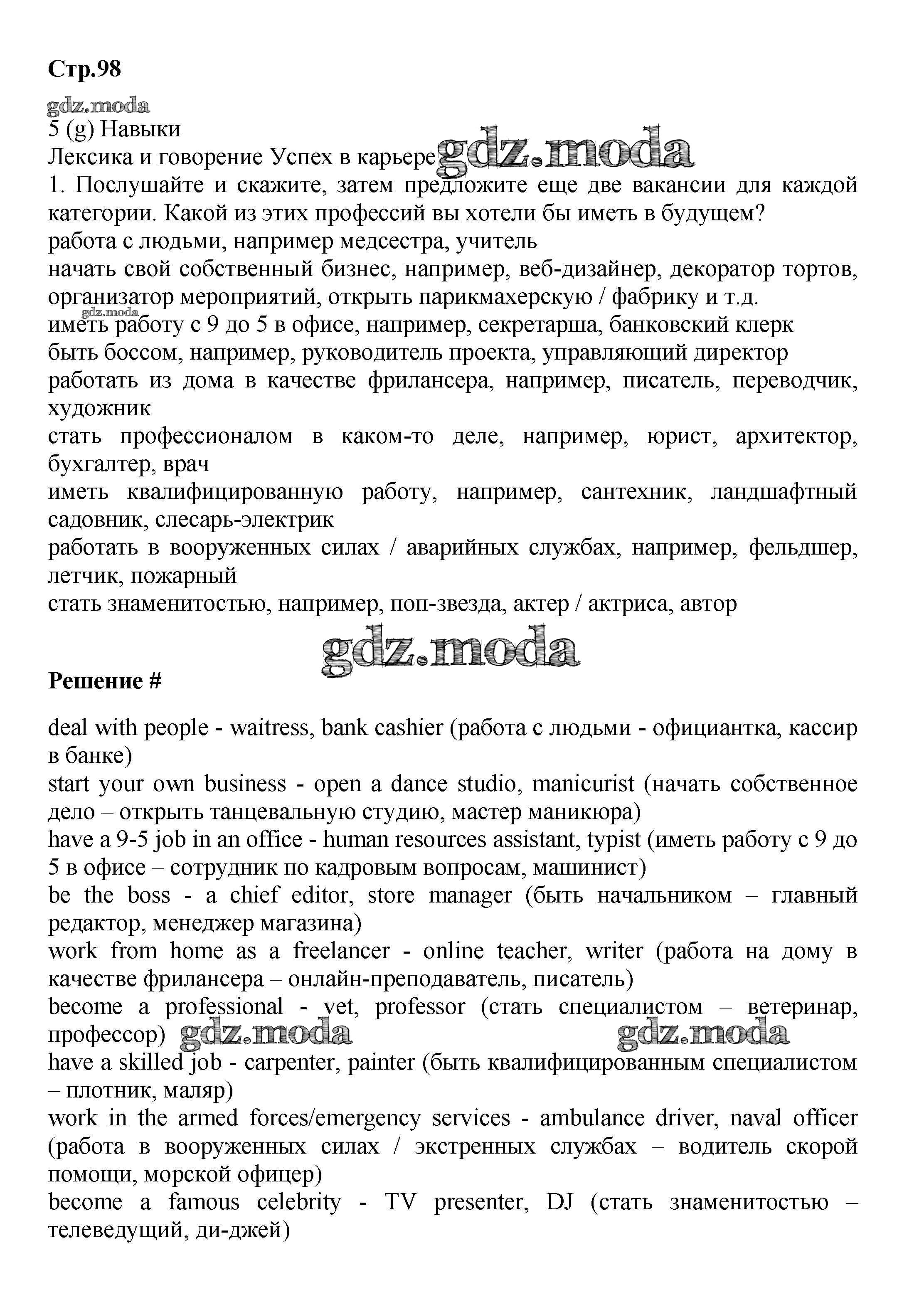 ГДЗ решение к заданию № стр.98 Английский язык 9 класс Starlight Баранова К.М. Просвещение 2017 Углубленный уровень ФГОС бесплатно на гдз.мода!
