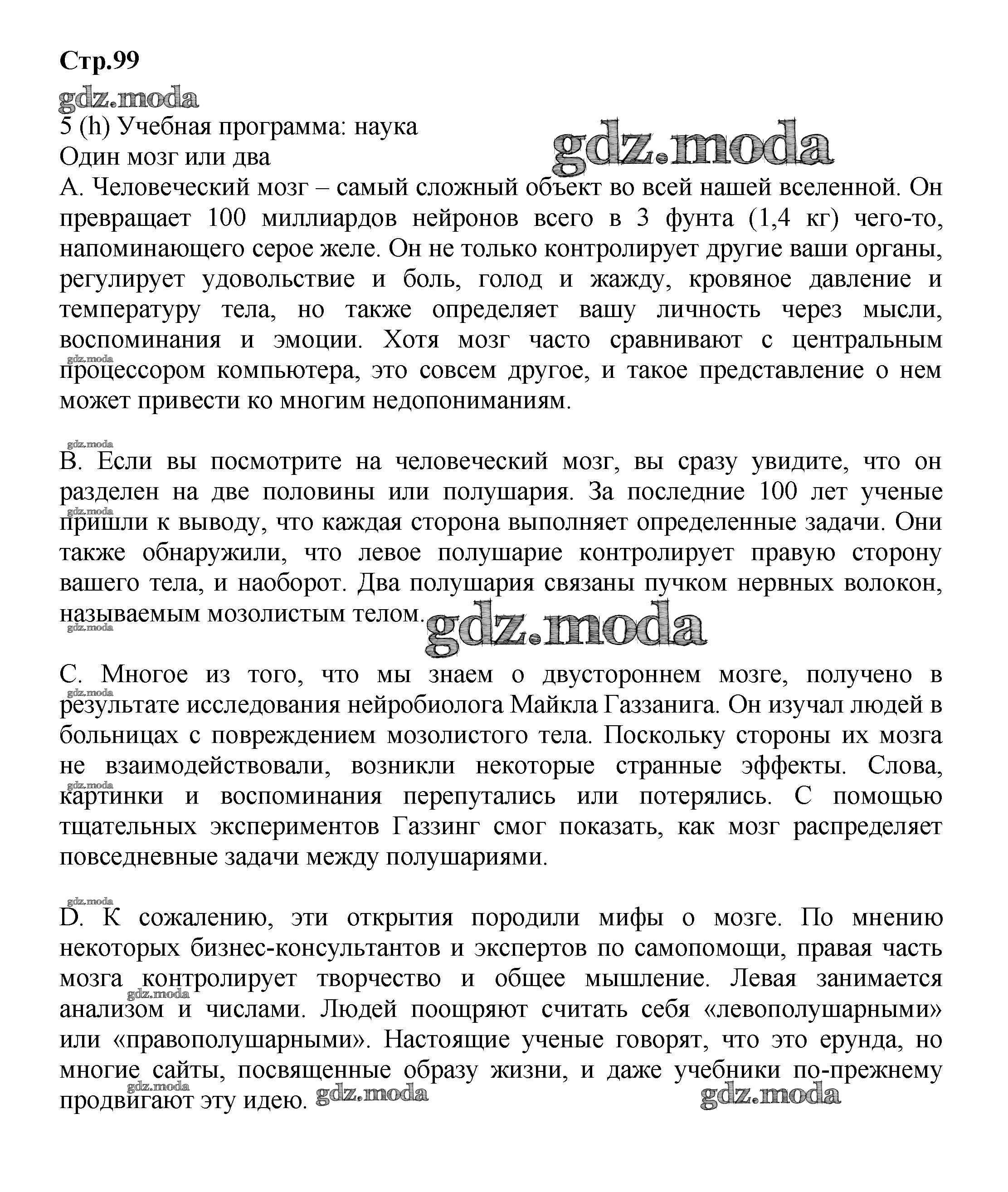 ГДЗ решение к заданию № стр.99 Английский язык 9 класс Starlight Баранова К.М. Просвещение 2017 Углубленный уровень ФГОС бесплатно на гдз.мода!
