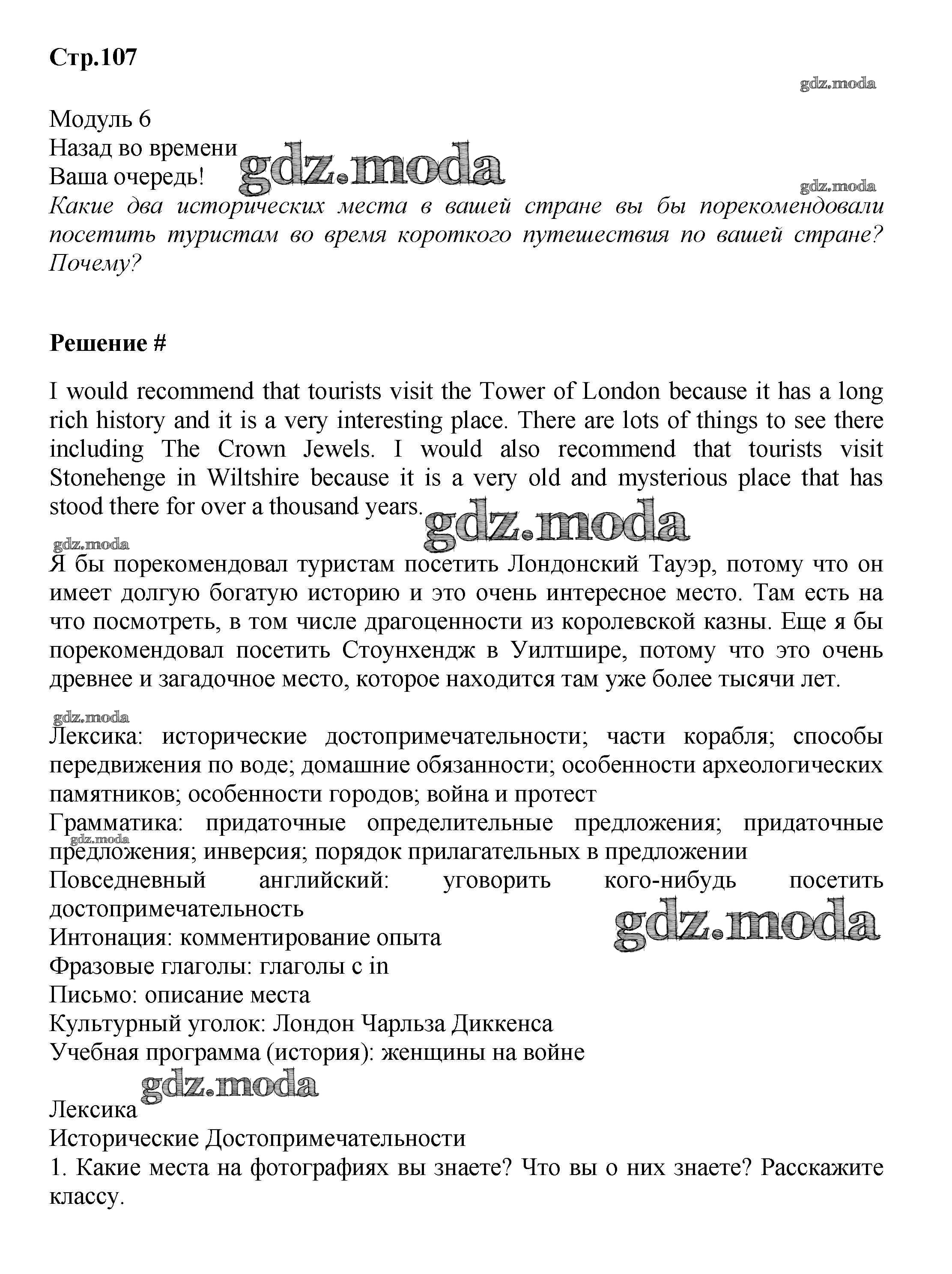 ГДЗ решение к заданию № стр.107 Английский язык 9 класс Starlight Баранова К.М. Просвещение 2017 Углубленный уровень ФГОС бесплатно на гдз.мода!