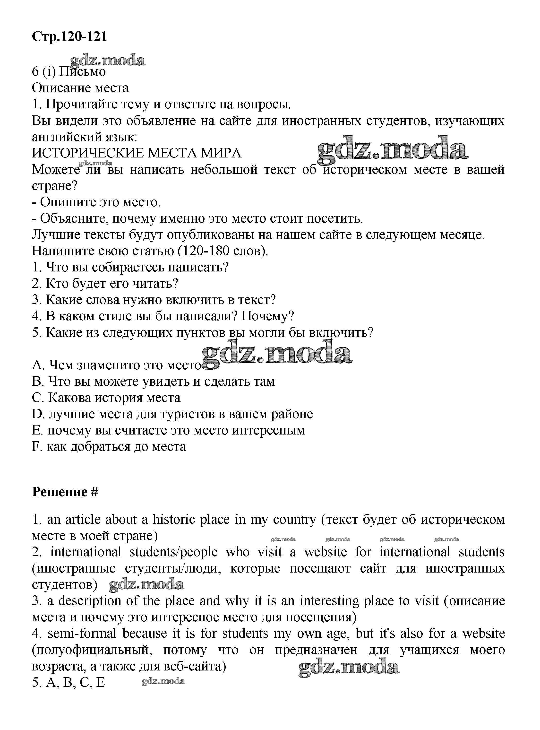 ГДЗ решение к заданию № стр.120-121 Английский язык 9 класс Starlight Баранова К.М. Просвещение 2017 Углубленный уровень ФГОС бесплатно на гдз.мода!