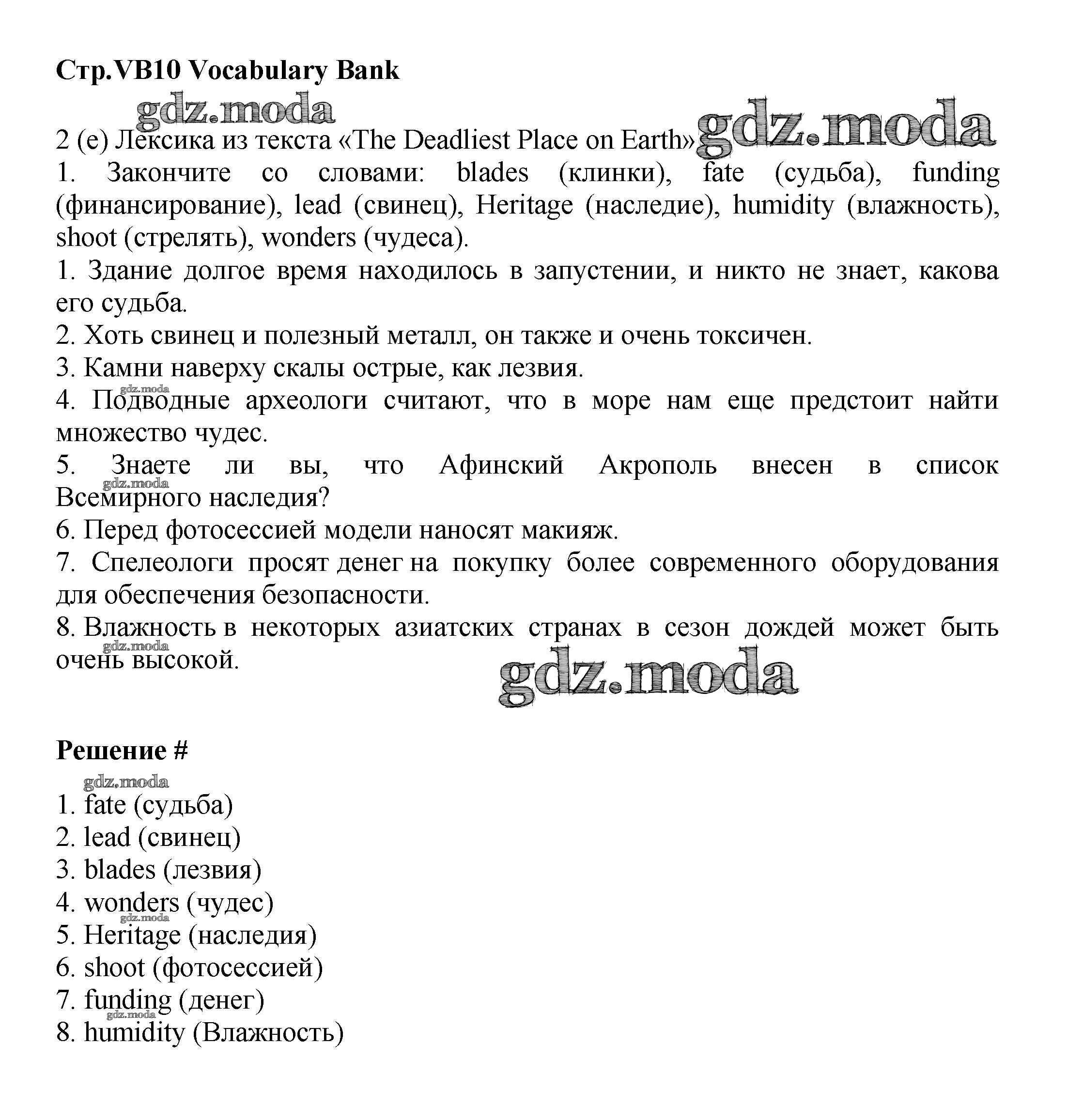 ГДЗ решение к заданию № VB10 Английский язык 9 класс Starlight Баранова К.М. Просвещение 2017 Углубленный уровень ФГОС бесплатно на гдз.мода!