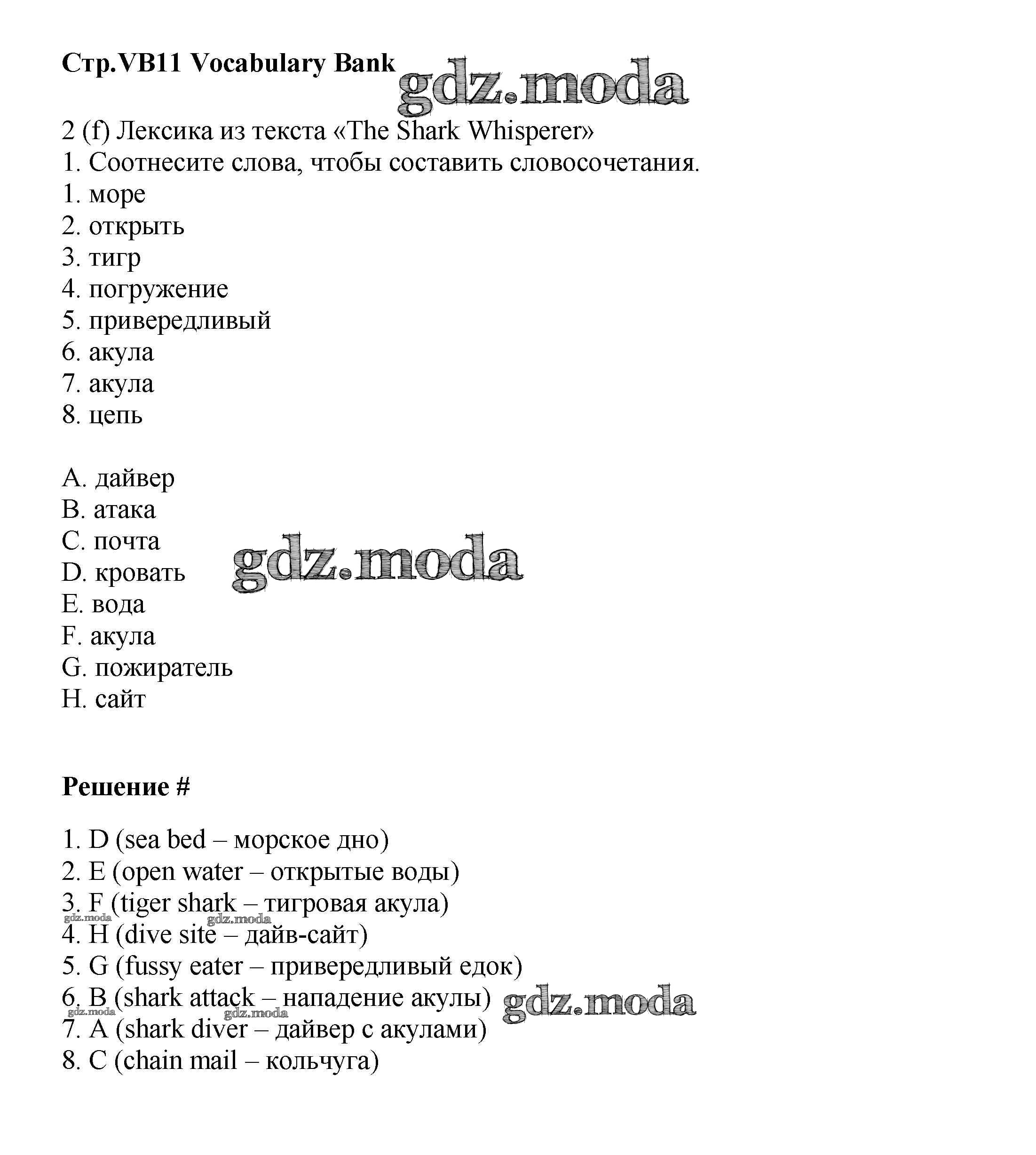 ГДЗ решение к заданию № VB11 Английский язык 9 класс Starlight Баранова К.М. Просвещение 2017 Углубленный уровень ФГОС бесплатно на гдз.мода!