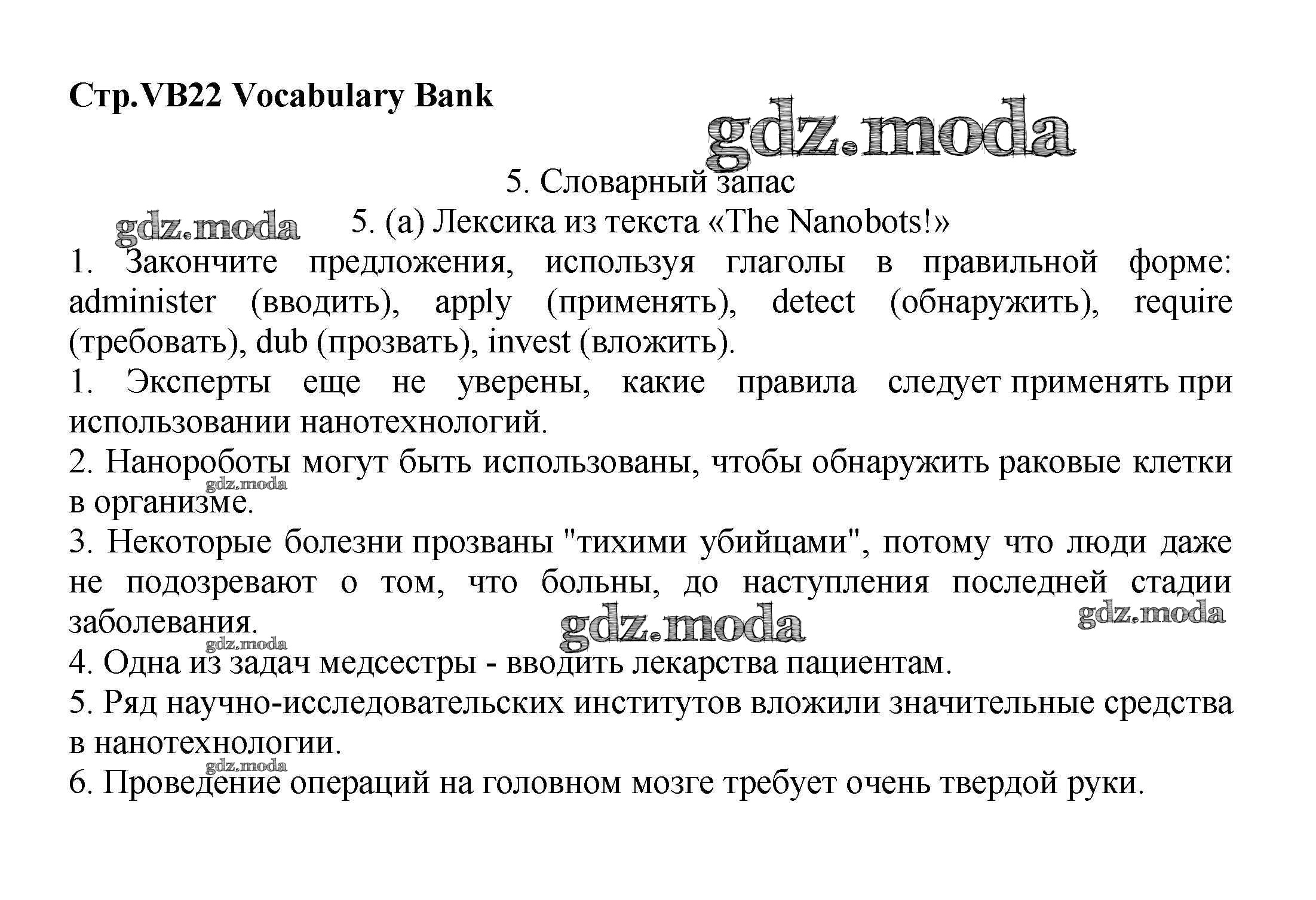 ГДЗ решение к заданию № VB22 Английский язык 9 класс Starlight Баранова К.М. Просвещение 2017 Углубленный уровень ФГОС бесплатно на гдз.мода!