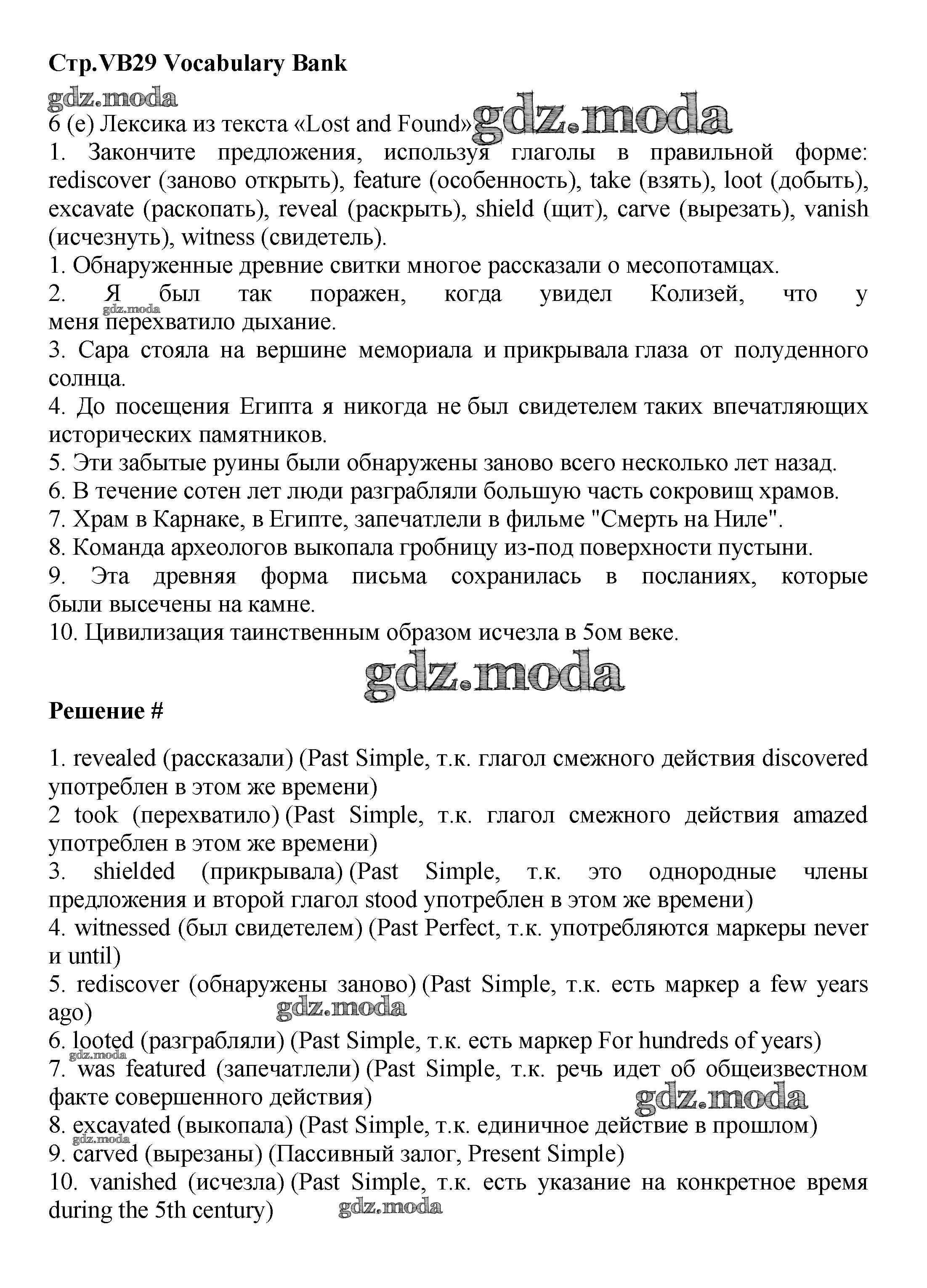 ГДЗ решение к заданию № VB29 Английский язык 9 класс Starlight Баранова К.М. Просвещение 2017 Углубленный уровень ФГОС бесплатно на гдз.мода!