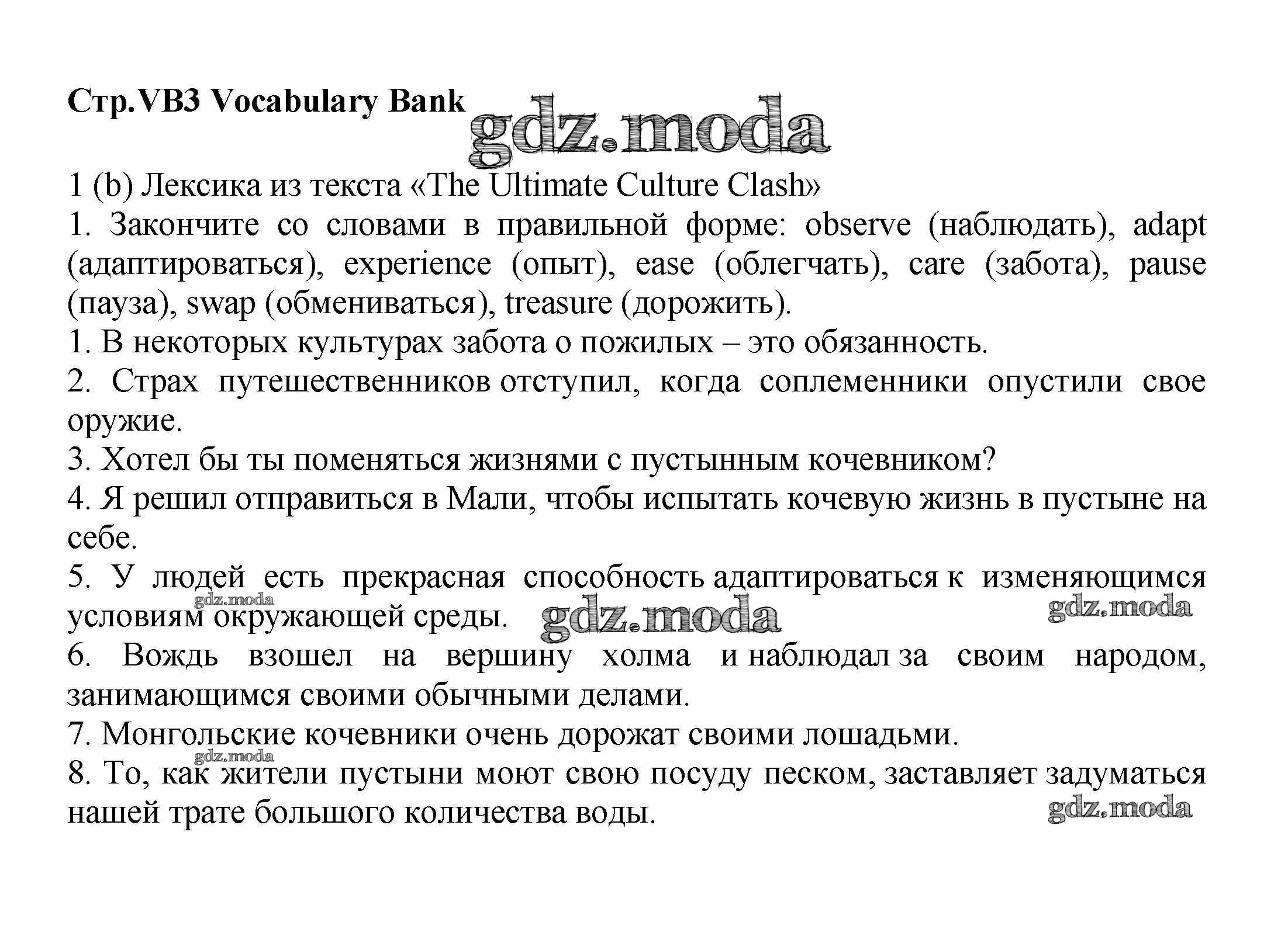 ГДЗ решение к заданию № VB3 Английский язык 9 класс Starlight Баранова К.М. Просвещение 2017 Углубленный уровень ФГОС бесплатно на гдз.мода!