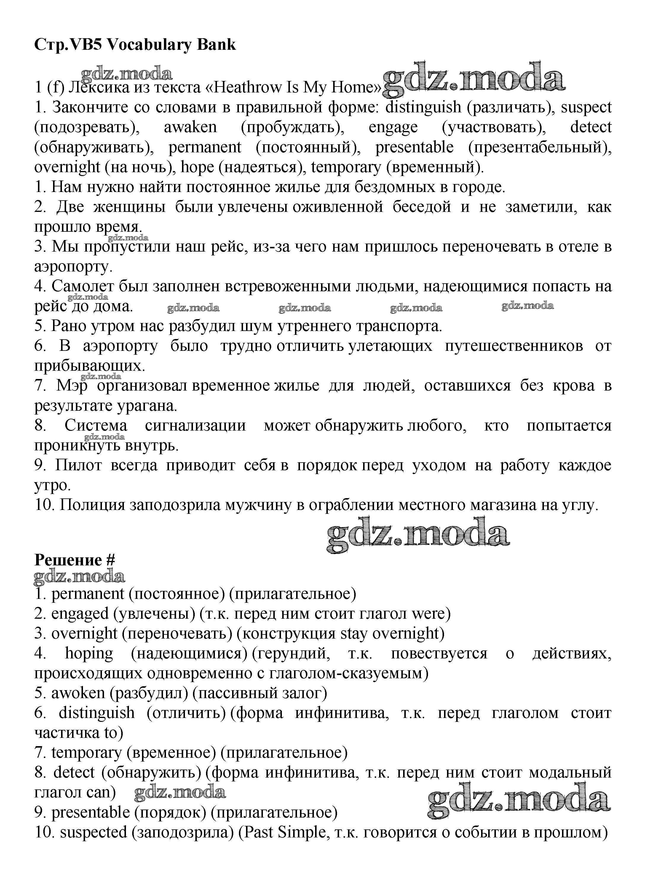 ГДЗ решение к заданию № VB5 Английский язык 9 класс Starlight Баранова К.М. Просвещение 2017 Углубленный уровень ФГОС бесплатно на гдз.мода!