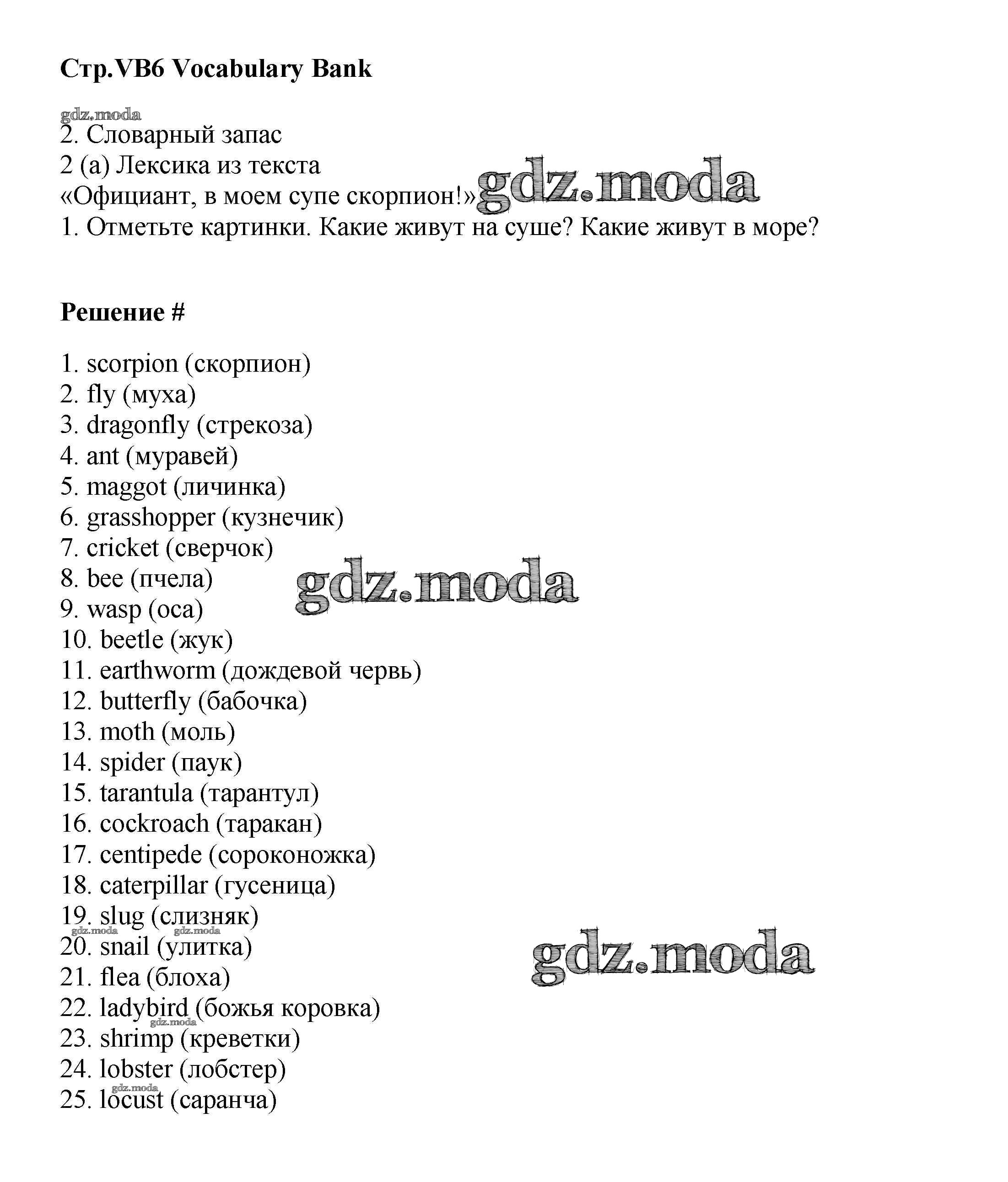 ГДЗ решение к заданию № VB6 Английский язык 9 класс Starlight Баранова К.М. Просвещение 2017 Углубленный уровень ФГОС бесплатно на гдз.мода!