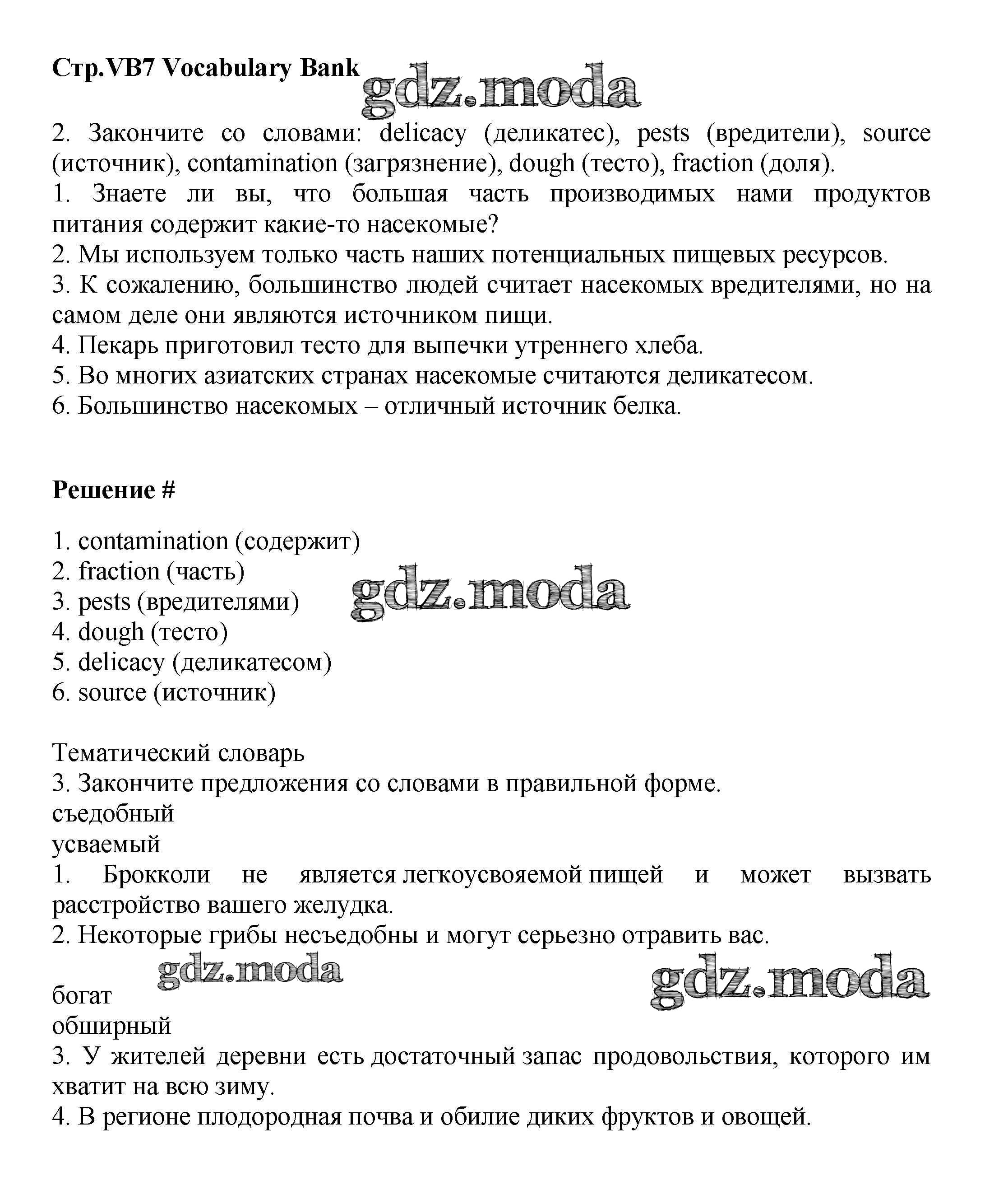 ГДЗ решение к заданию № VB7 Английский язык 9 класс Starlight Баранова К.М. Просвещение 2017 Углубленный уровень ФГОС бесплатно на гдз.мода!