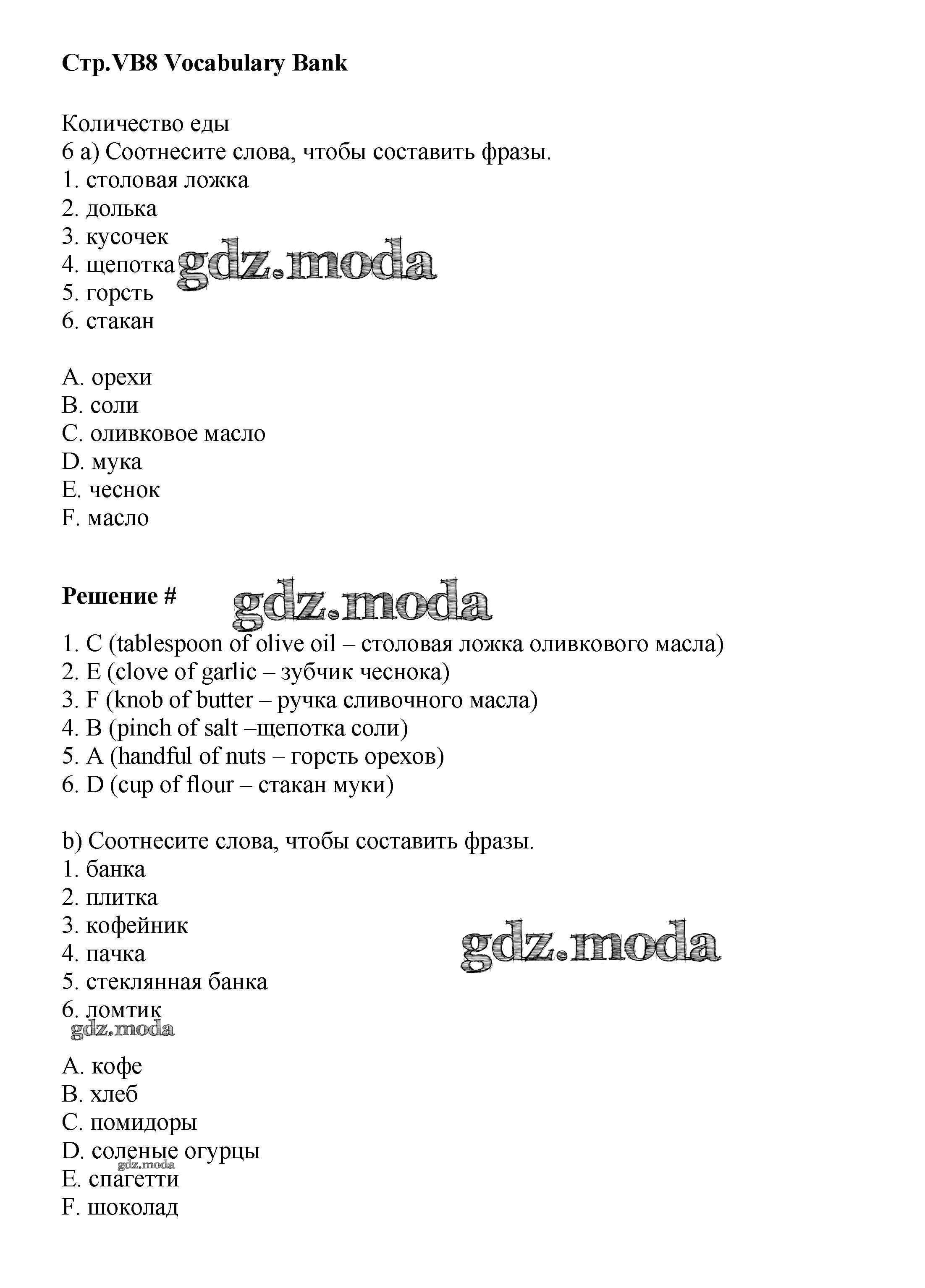ГДЗ решение к заданию № VB8 Английский язык 9 класс Starlight Баранова К.М. Просвещение 2017 Углубленный уровень ФГОС бесплатно на гдз.мода!