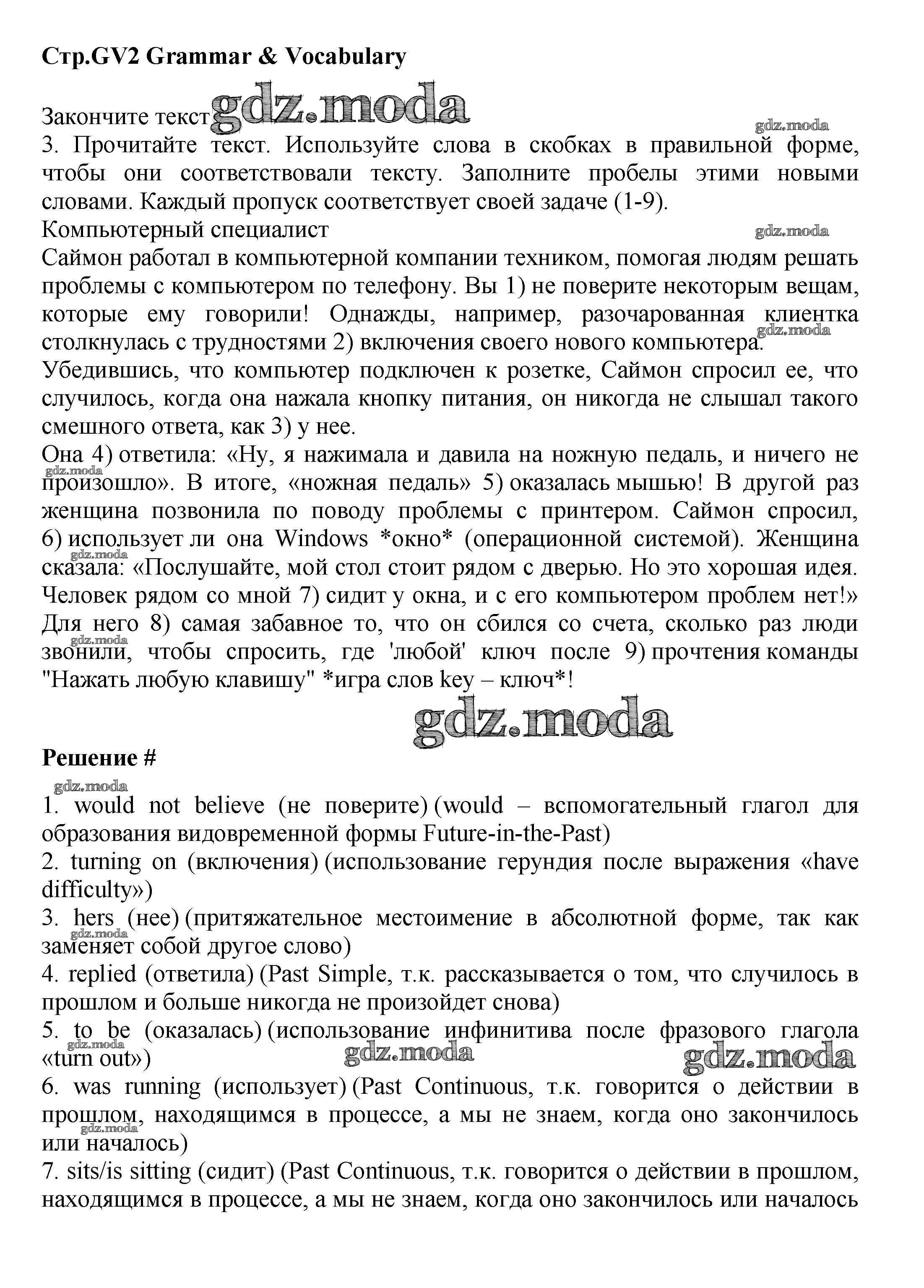 ГДЗ решение к заданию № GV2 Английский язык 9 класс Starlight Баранова К.М. Просвещение 2017 Углубленный уровень ФГОС бесплатно на гдз.мода!