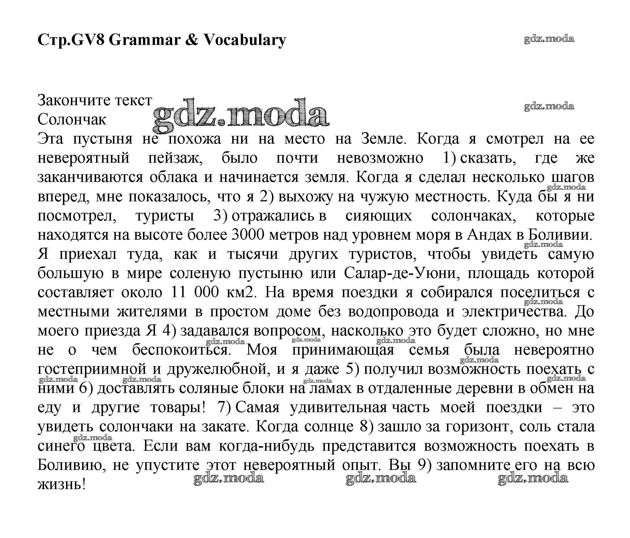 ГДЗ решение к заданию № GV8 Английский язык 9 класс Starlight Баранова К.М. Просвещение 2017 Углубленный уровень ФГОС бесплатно на гдз.мода!