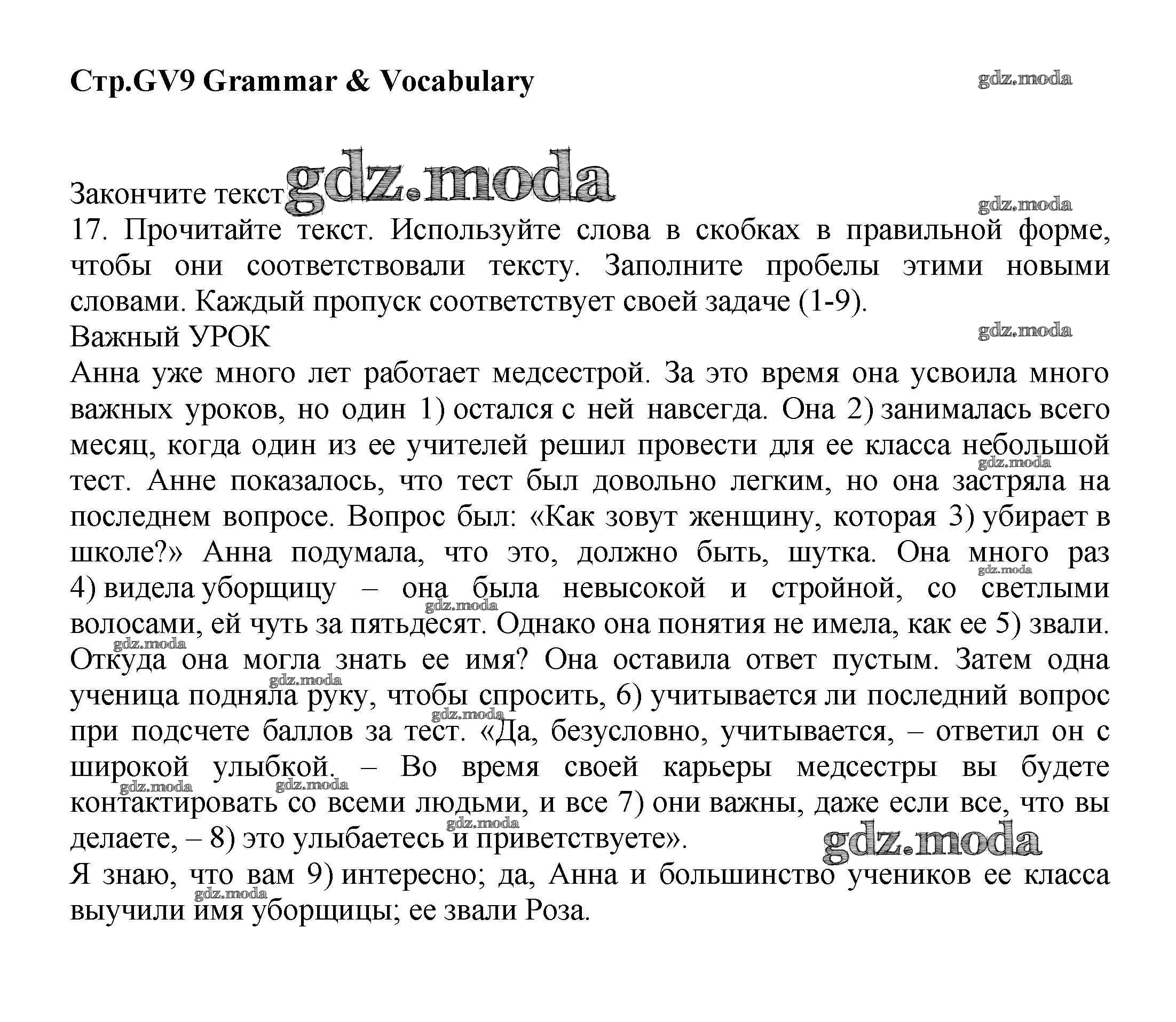 ГДЗ решение к заданию № GV9 Английский язык 9 класс Starlight Баранова К.М. Просвещение 2017 Углубленный уровень ФГОС бесплатно на гдз.мода!