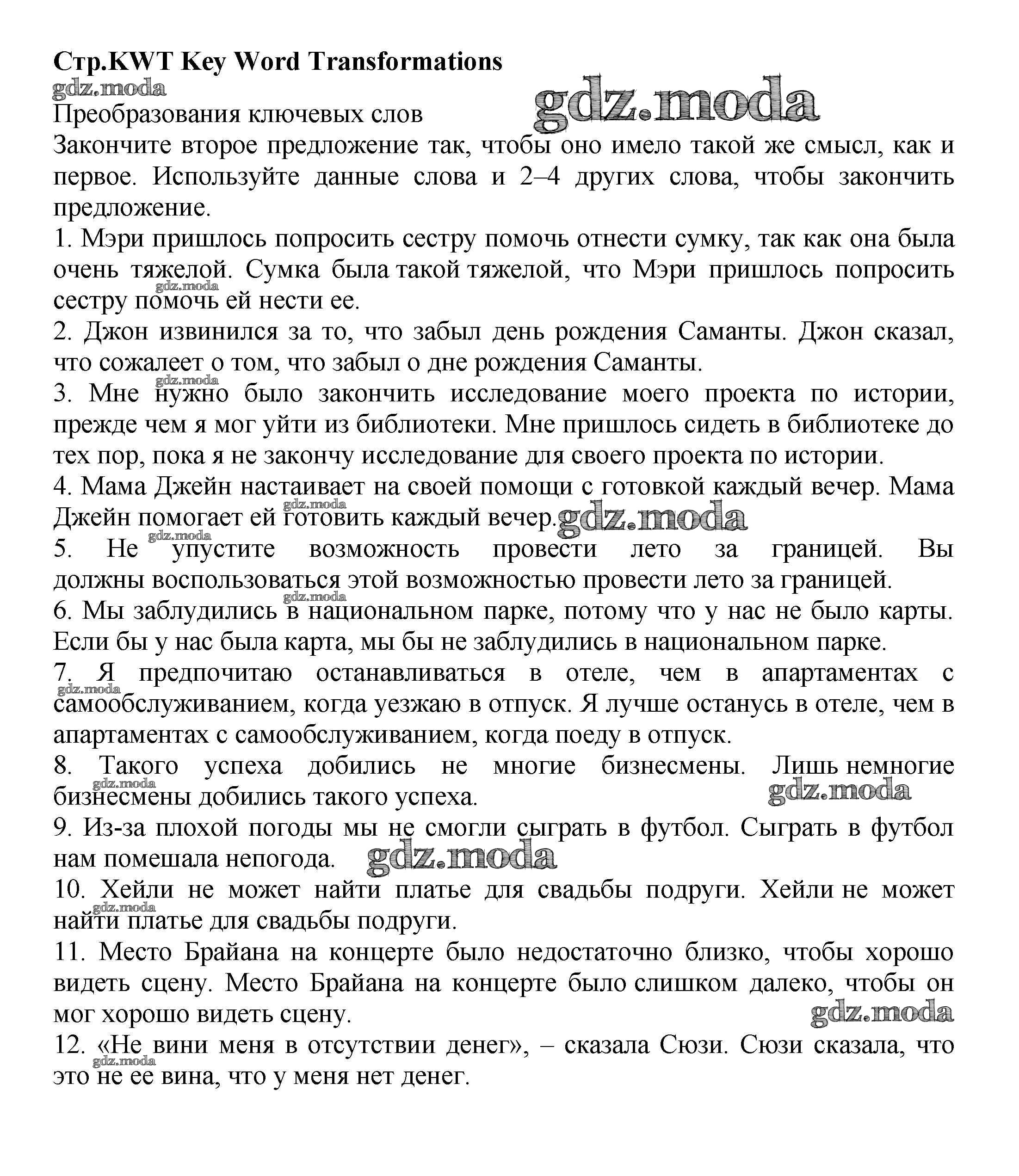 ГДЗ решение к заданию № KWT Английский язык 9 класс Starlight Баранова К.М. Просвещение 2017 Углубленный уровень ФГОС бесплатно на гдз.мода!